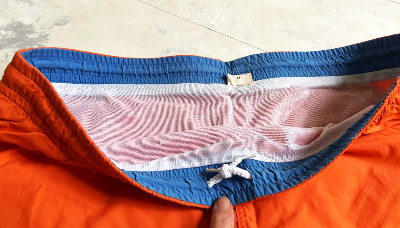 krásna pestrá sýta oranžová farba,zdnu podšité vzdušnou sieťkou,rýchloschnúce,pás = 41- 45 x 2 cm,boky =59 x 2 cm, dlžka = 40 cm