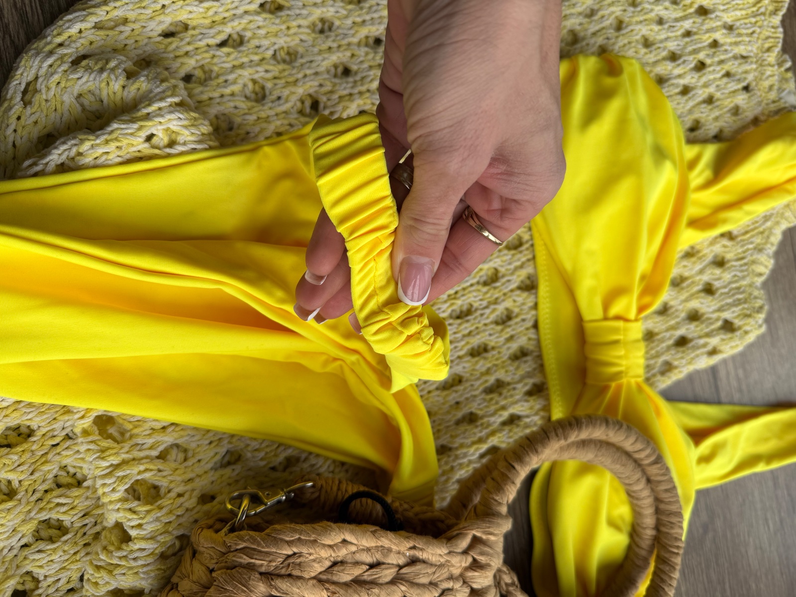 Luxusne sexi Women Neon Yellow Push-up Bandeau Top Bikini Swimsuit - plavky velmi kvalitnej znacky RELLECIGA v nadhernej neonovo zltej farbe doplnene krasnym strapcovitym prevedenim v podobe listko...
