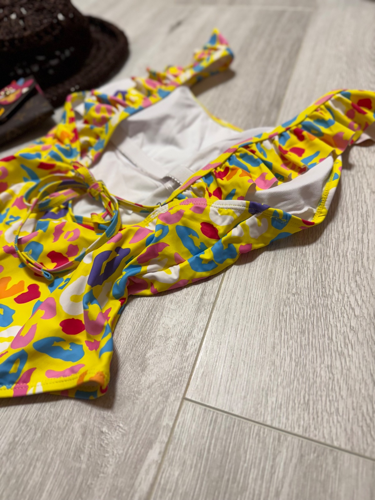 👙🏖️🐬 Predám jednodielne plavky zdobené volánikmi, vyberateľné prsné vložky, vzadu zaväzovanie + silikónový pás pre lepšie držanie. Doplnky nie sú súčasťou predaja. 🔝 stav.