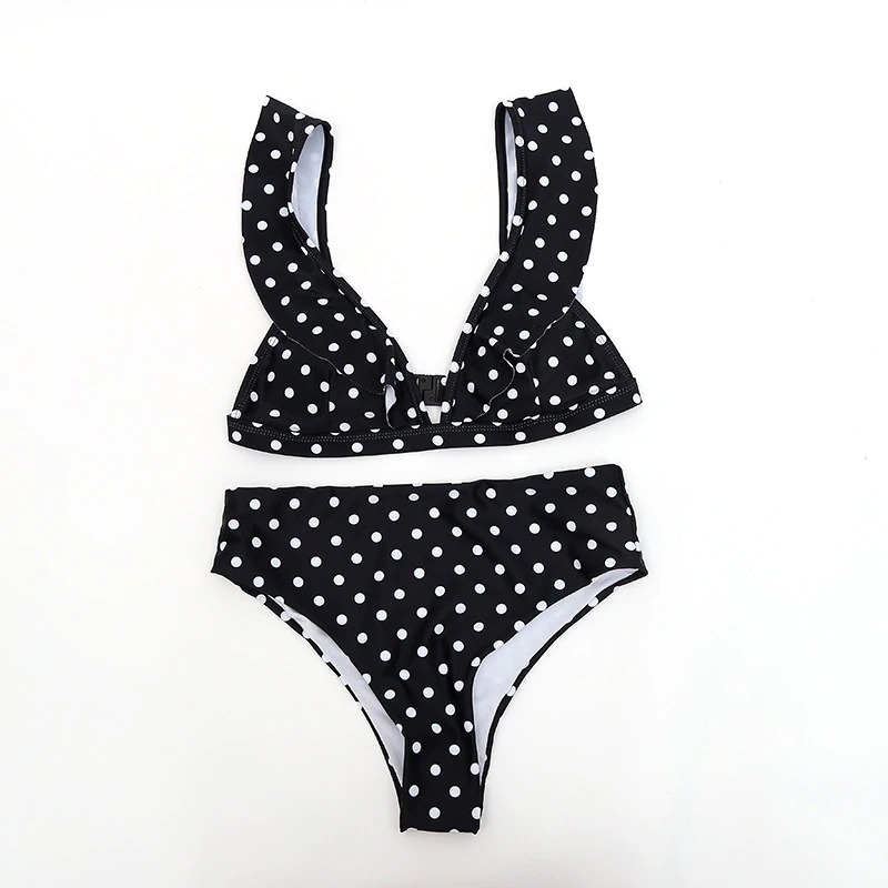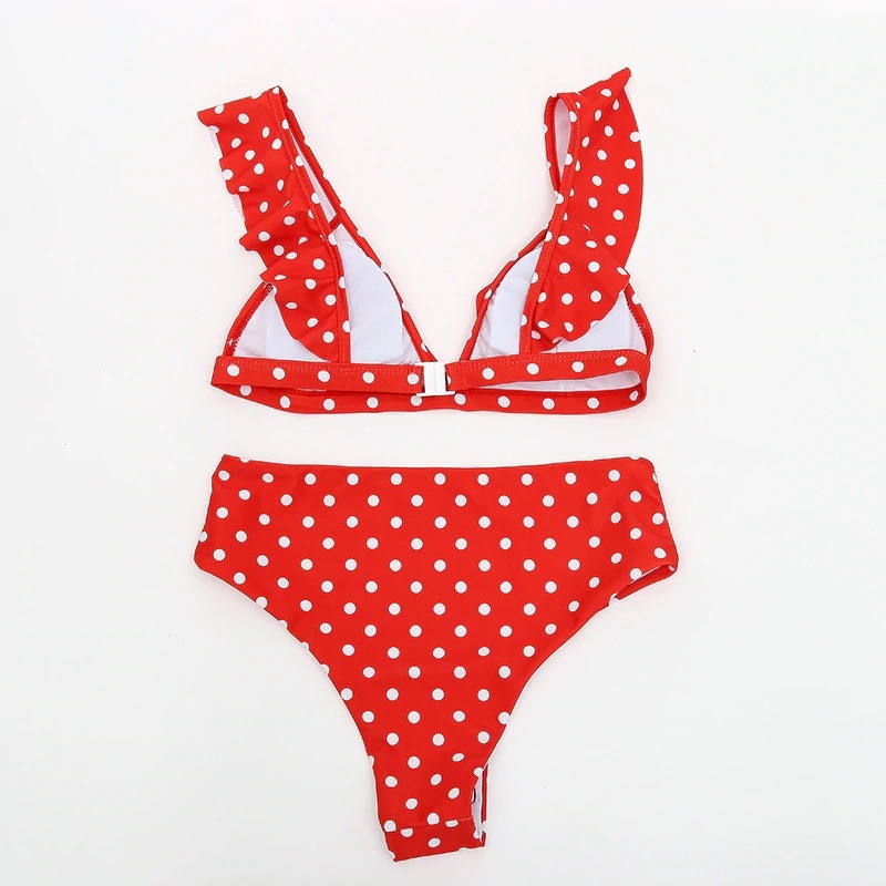 krasne bodkove plavky s vyssim pasom . podprsenka mierne vystuzena, velkost B , velkost M