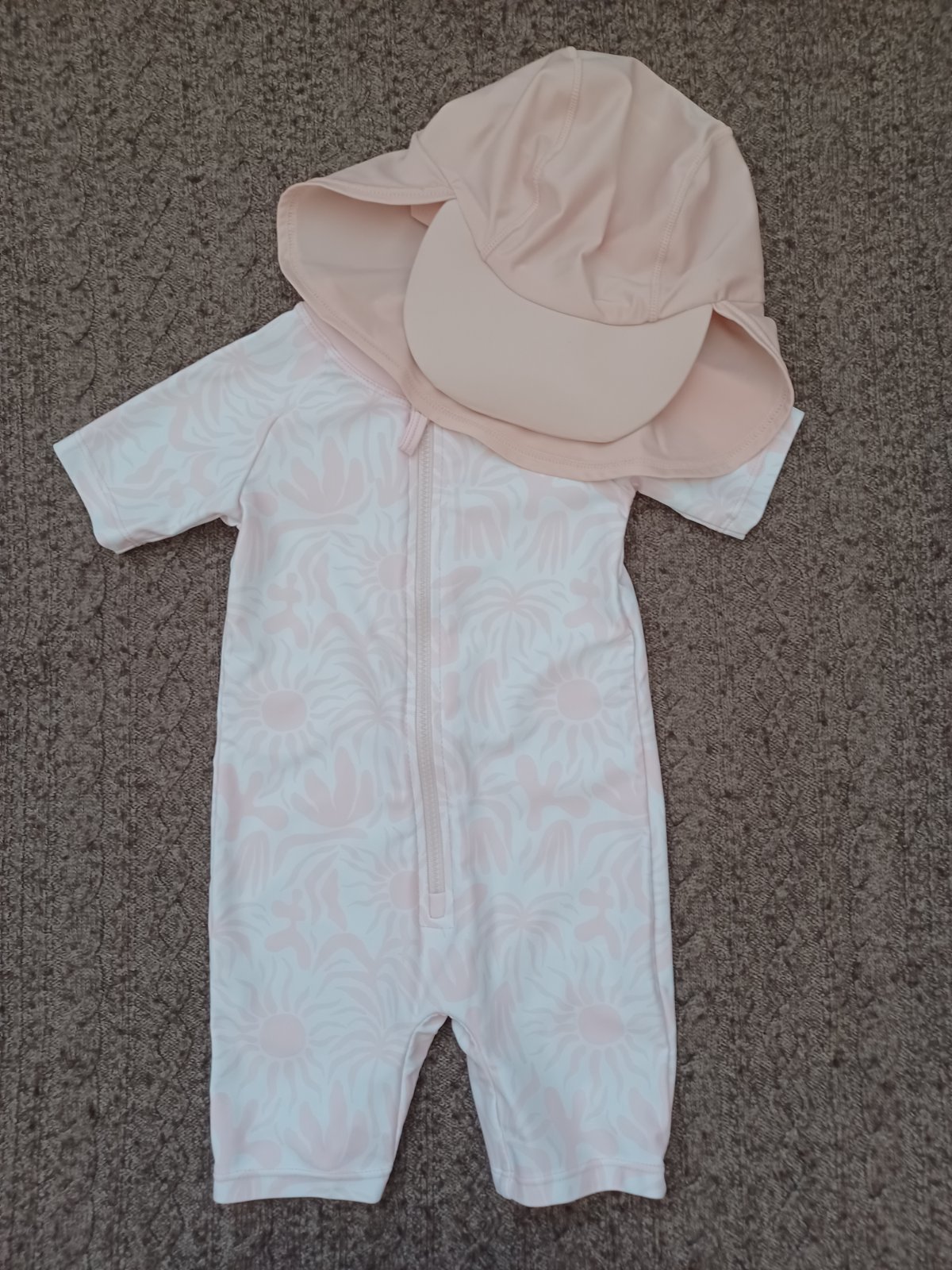 Iba raz použité plavky a čiapka do vody s UV filtrom.