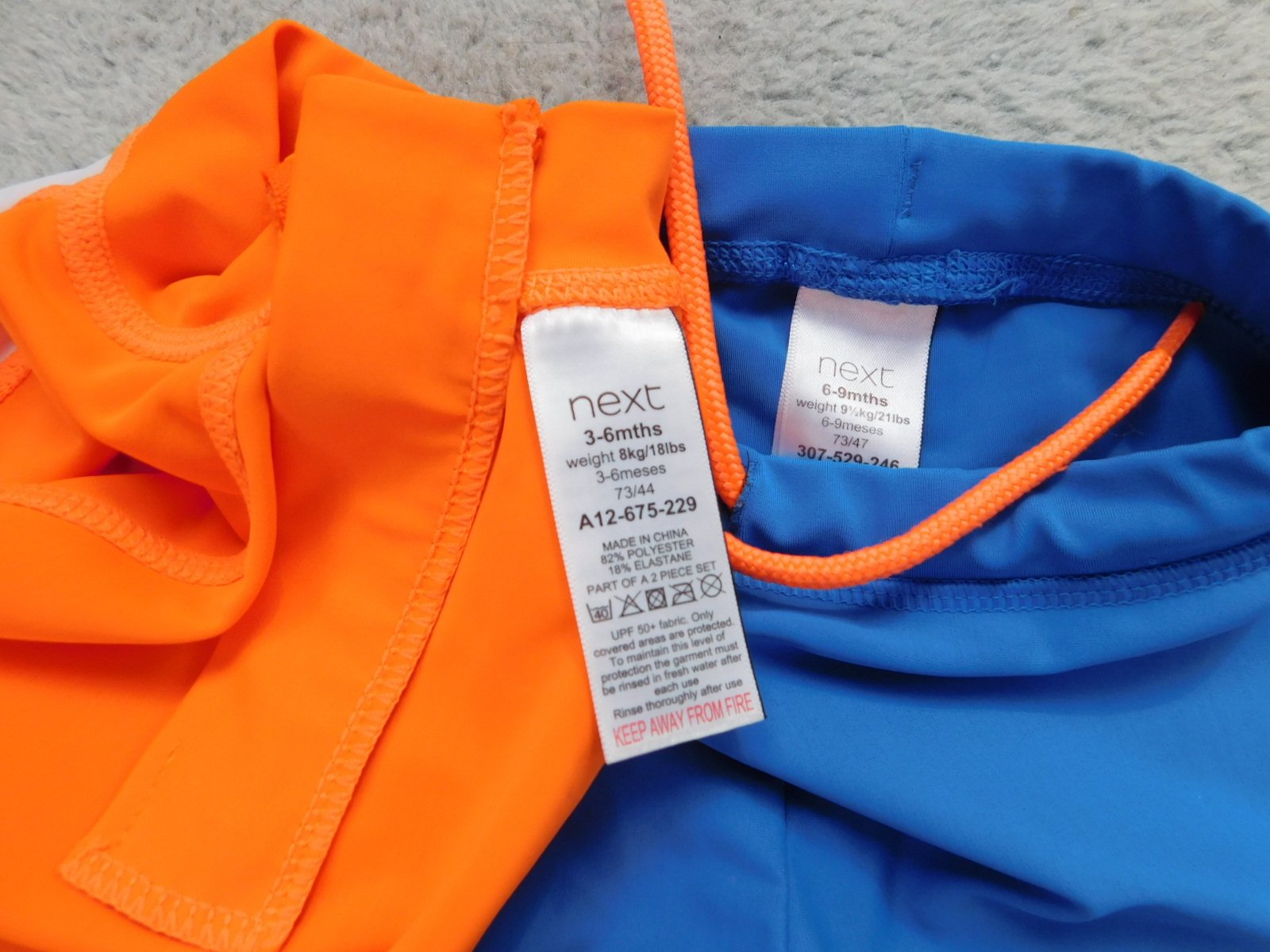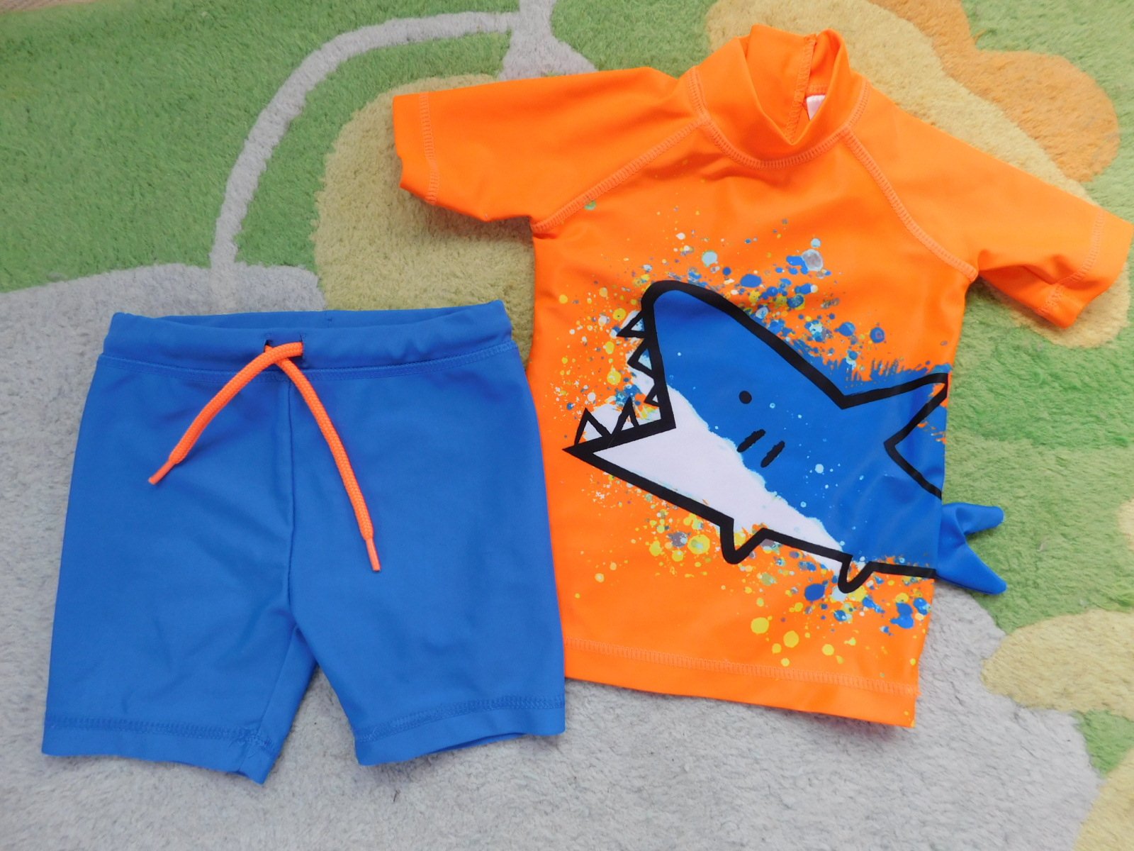 predám súpravu do vody Next, veľ. 6 mesiacov , sadne na 68-74, tričko len oprané, obe v bezchybnom stave, tričko dĺžka 33, šírka 22 cm, spodok pás 20 s funkčnou šnúrkou, cena 7,- plus pošt.