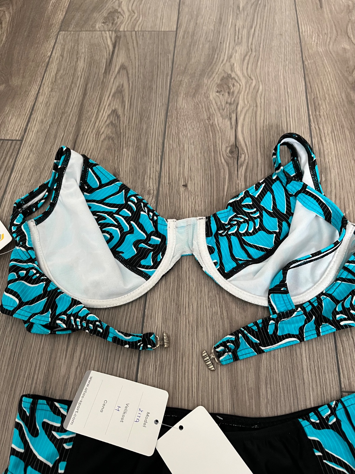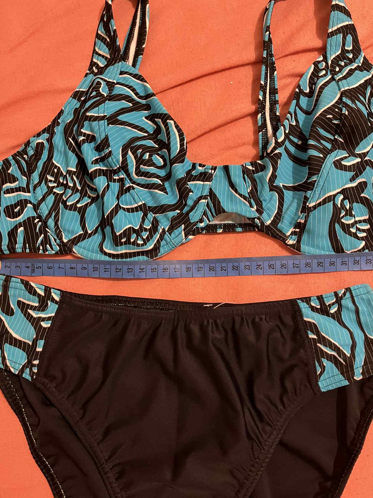 Vrch 95DD/E, veľkosť písaná 5, obvod sa natiahne aj na viac, nohavičky písaná M, ale skôr L. Len vyskúšané.