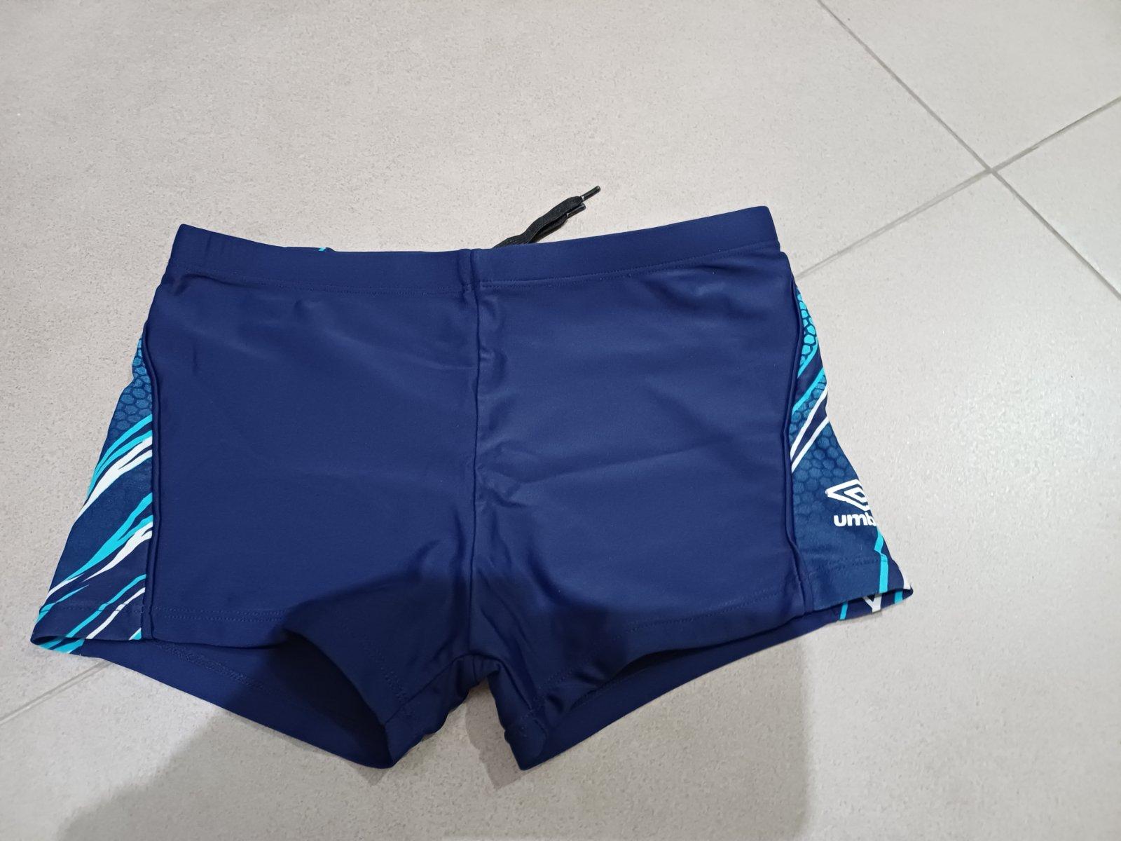 Predám zachovalé kvalitné plavky Umbro. Uvedená veľkosť 140 Rozmery: šírka v páse v pokoji 2x 30,5cm, plus je možné stiahnuť šnúrkou, celková dĺžka 24cm. K nákupu darujem ešte jedny plavky Umbro, rovnakej veľkosti. Na týchto už farba nie je taká sýta, ale stále funkčné, bez poškodenia.