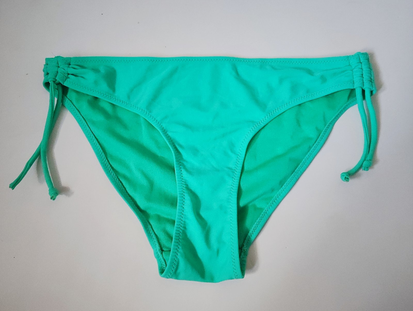 Plavková push-up podprsenka v perfektnom bezchybnom stave, na zaväzovanie. Veľkosť píšu S, no košíčky sú B (C?). Rozmery - vo fotkách.