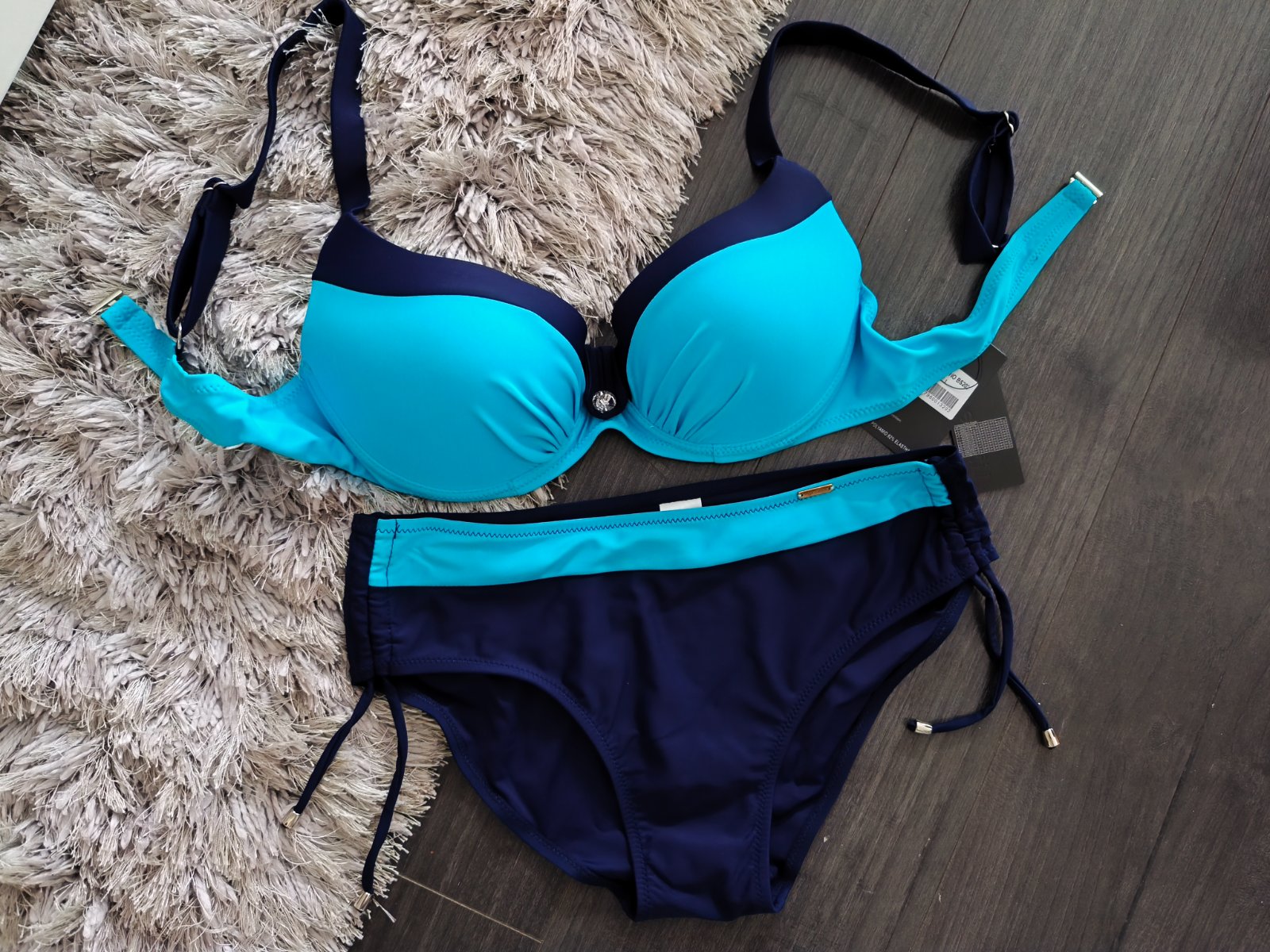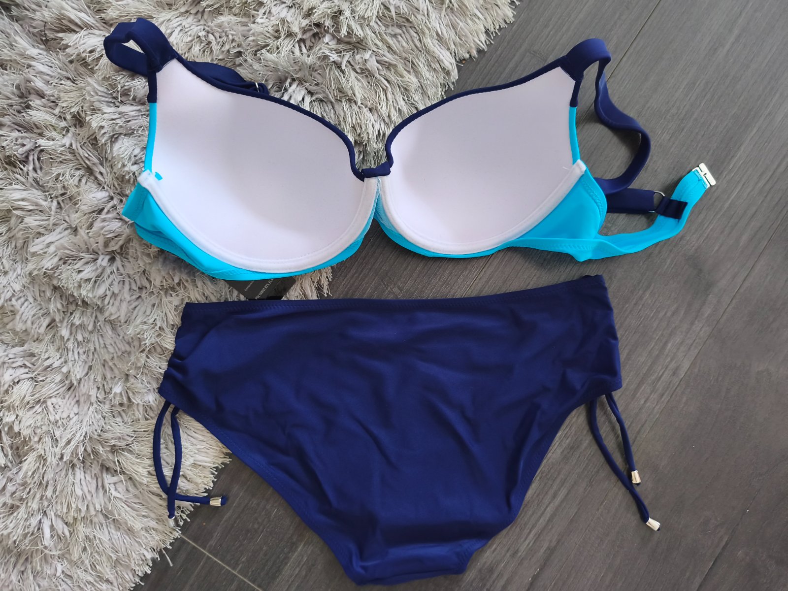 Vystužené košíky s nastaviteľnými širšími ramienkami. Nohavičky majú na bokoch šnúrky na sťahovanie čím si viete výšku bokov upraviť.