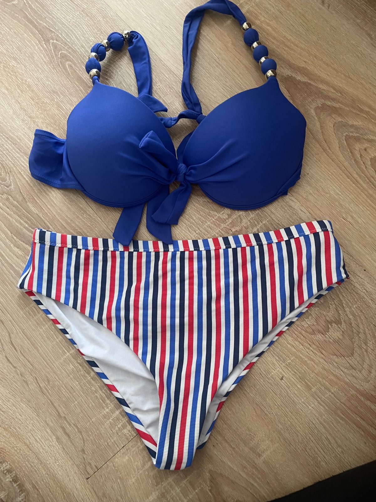 Nové plavky krásne sa trblietkami na slnku.Velkost-L košíky sú vystužené nohavičky sú tangá krásne sadnú na postavu.