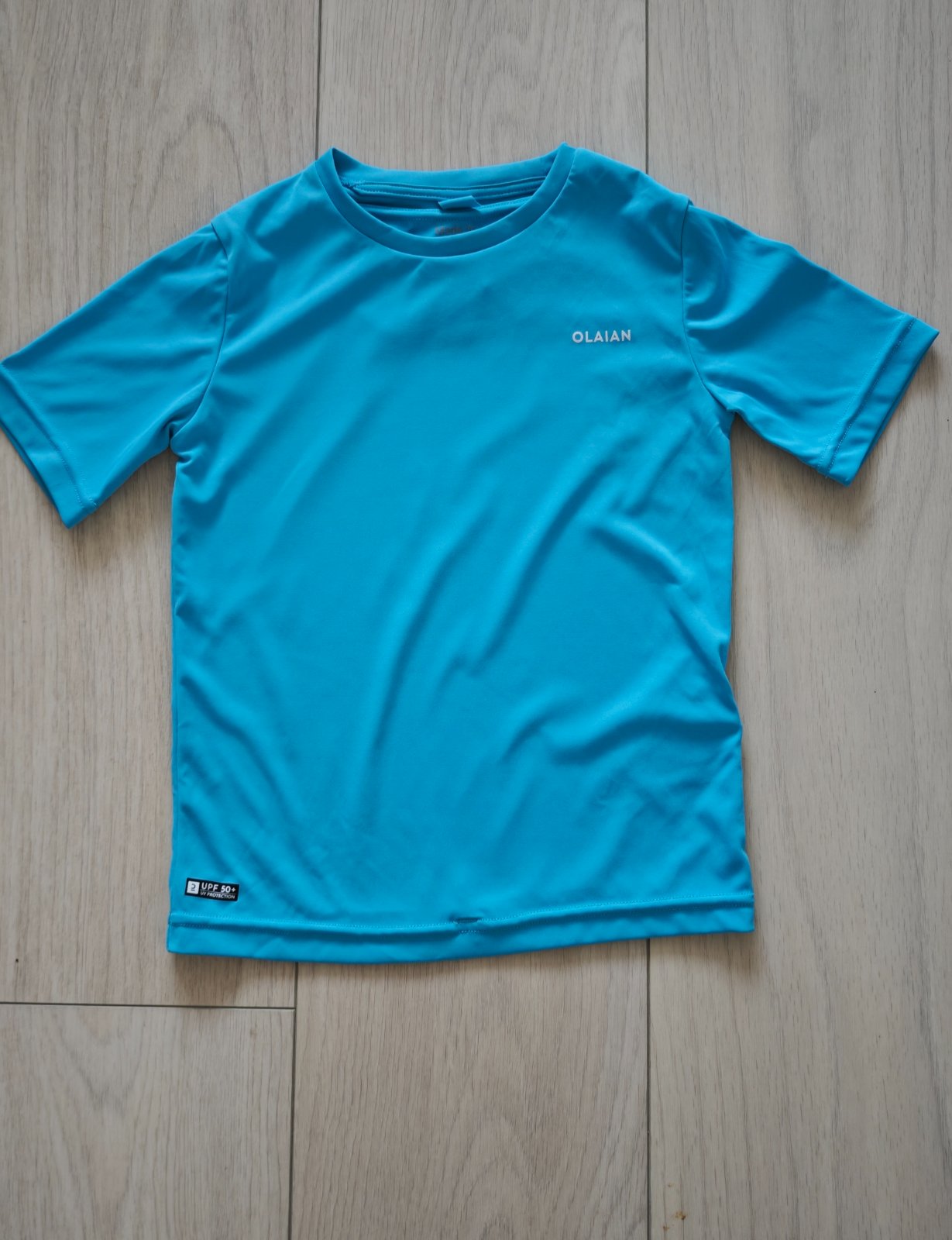 Tričko na plávanie s faktorom UPF 50+, farba kráľovská modrá s výrazne neónovou oranžovou, krajšia ako na fotkách, výborný stav. Nevymieňam.