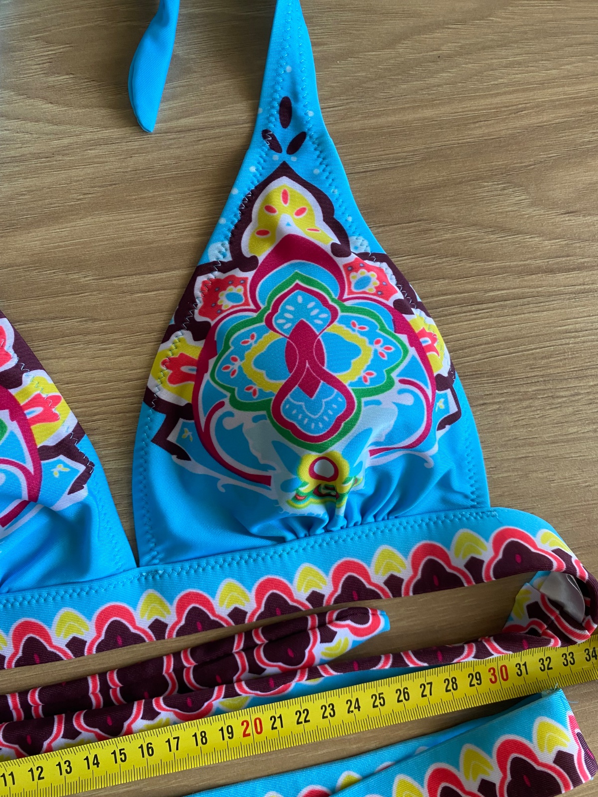 Predám plavkove vrchy v dobrom stave Mentolovy - prsia rozmer 13x33cm v klude Celkova dľžka - 105cm písana veľkost 12A Neónové značka Cotton Celkova dľžka - 91cm košik je vysoky 10cm,dlhy -14cm