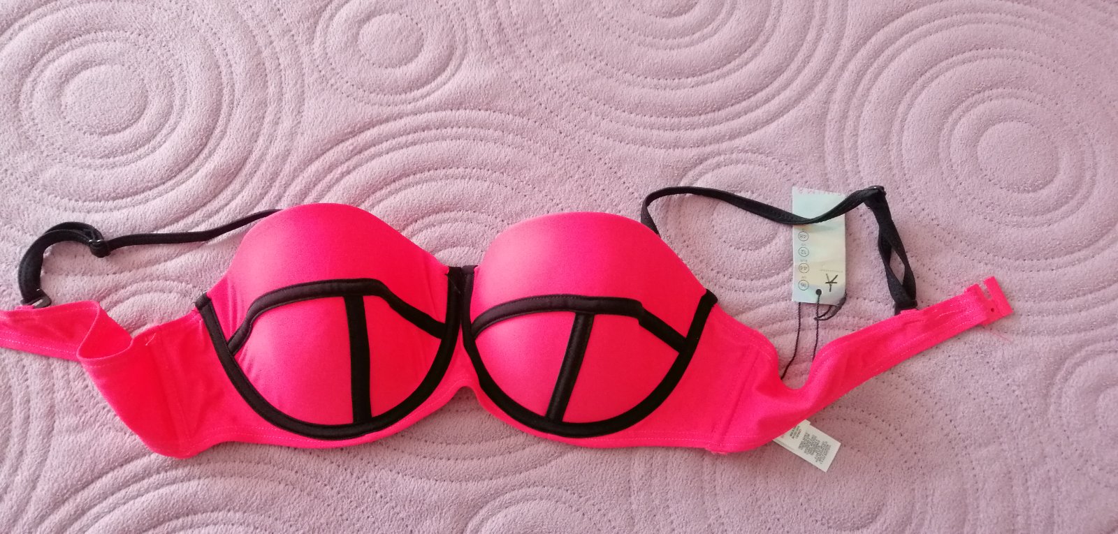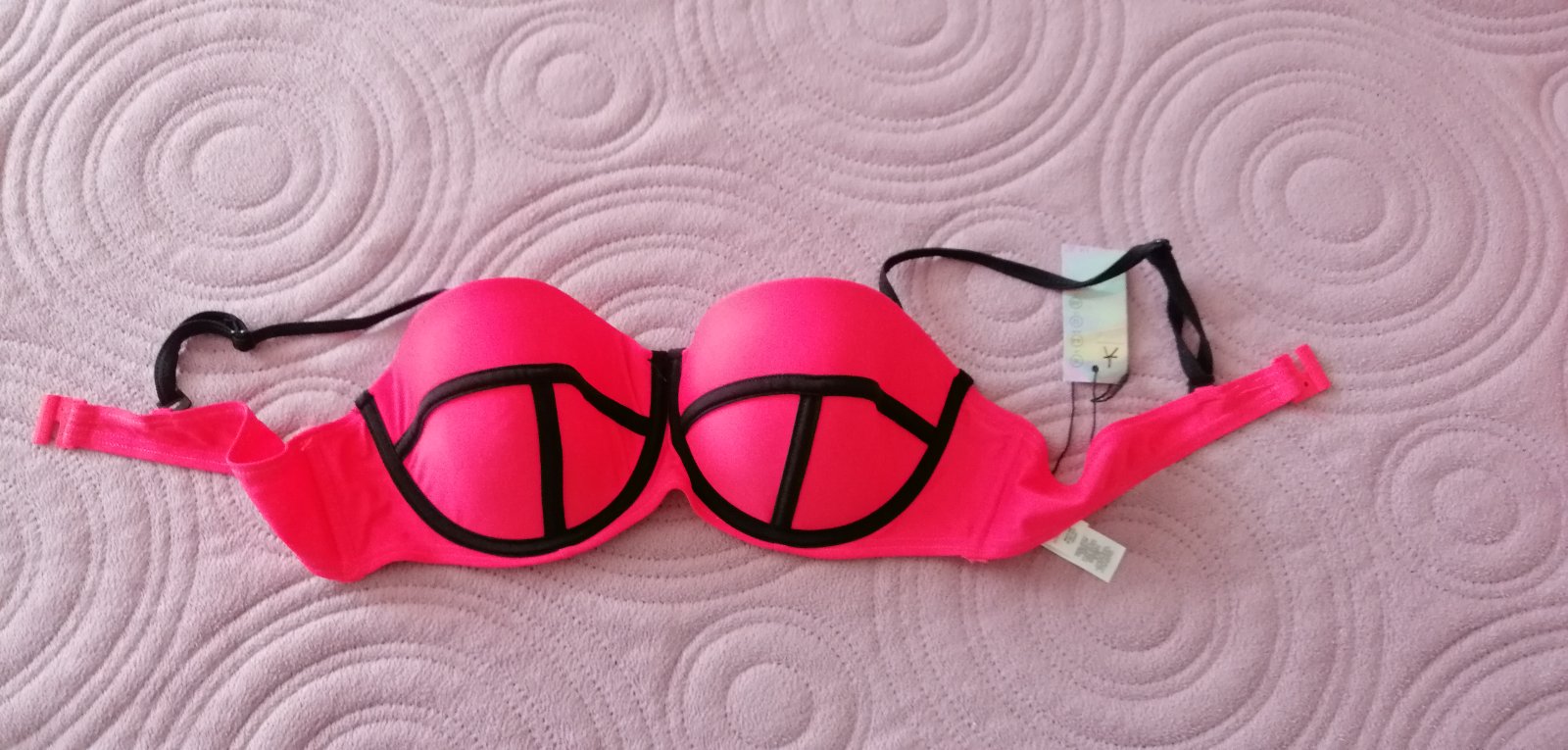 Krásna žiarivá farba, vykrojena podprsenka plavkova, žiaľ iba vrch, dá sa dopasovať ku akýmkoľvek plávam spodku, hlavne čierne spodok rôzne fakt, mne voľná je, pevná. Košíky tak C