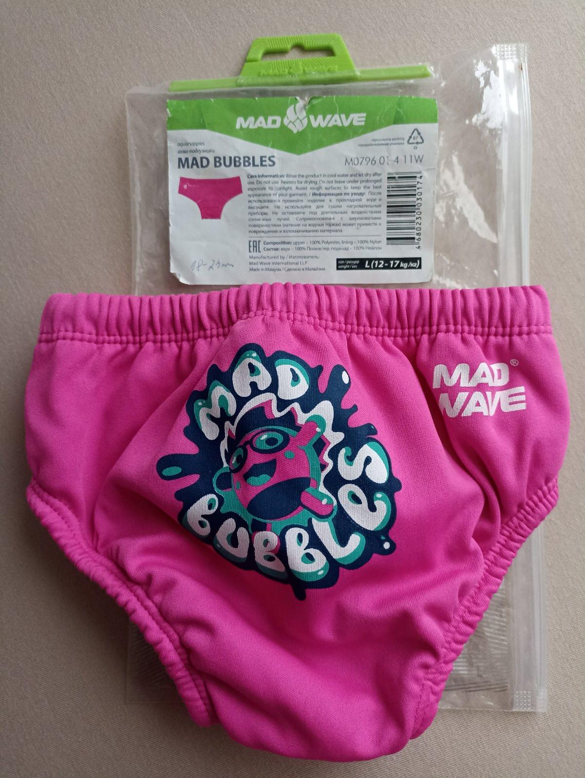Mad Wave Bubbles sú vyrobené z polyesteru a nylonu, vďaka ktorému nie je potrebné ich dopĺňať jednorazovými plienkami alebo inými hygienickými pomôckami. Aj vďaka elastickým pevným gumičkám okolo stehien a v páse, neprepúšťajú nečistoty do vody, ale udržiavajú ich vnútri v plienke. Maju ochranny faktor UPF50+