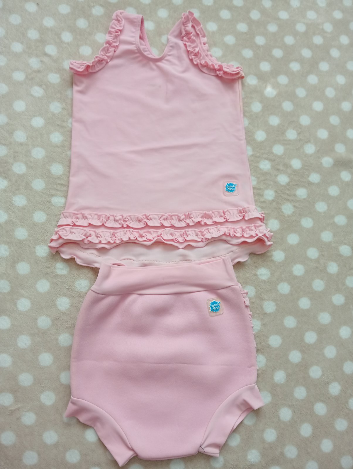 Predám plavky Zn Splash About, veľ. XXL, na 2-3 roky. Neoprénové nohavičky proti prenikaniu. Na zadnej strane rozkošné volániky. Tričko nie je neoprénové. Kupivané na MK, na tričku je škvrna zrejme od krému na opaľovanie. Inak bez poškodení. Plavky majú UPF 50+.