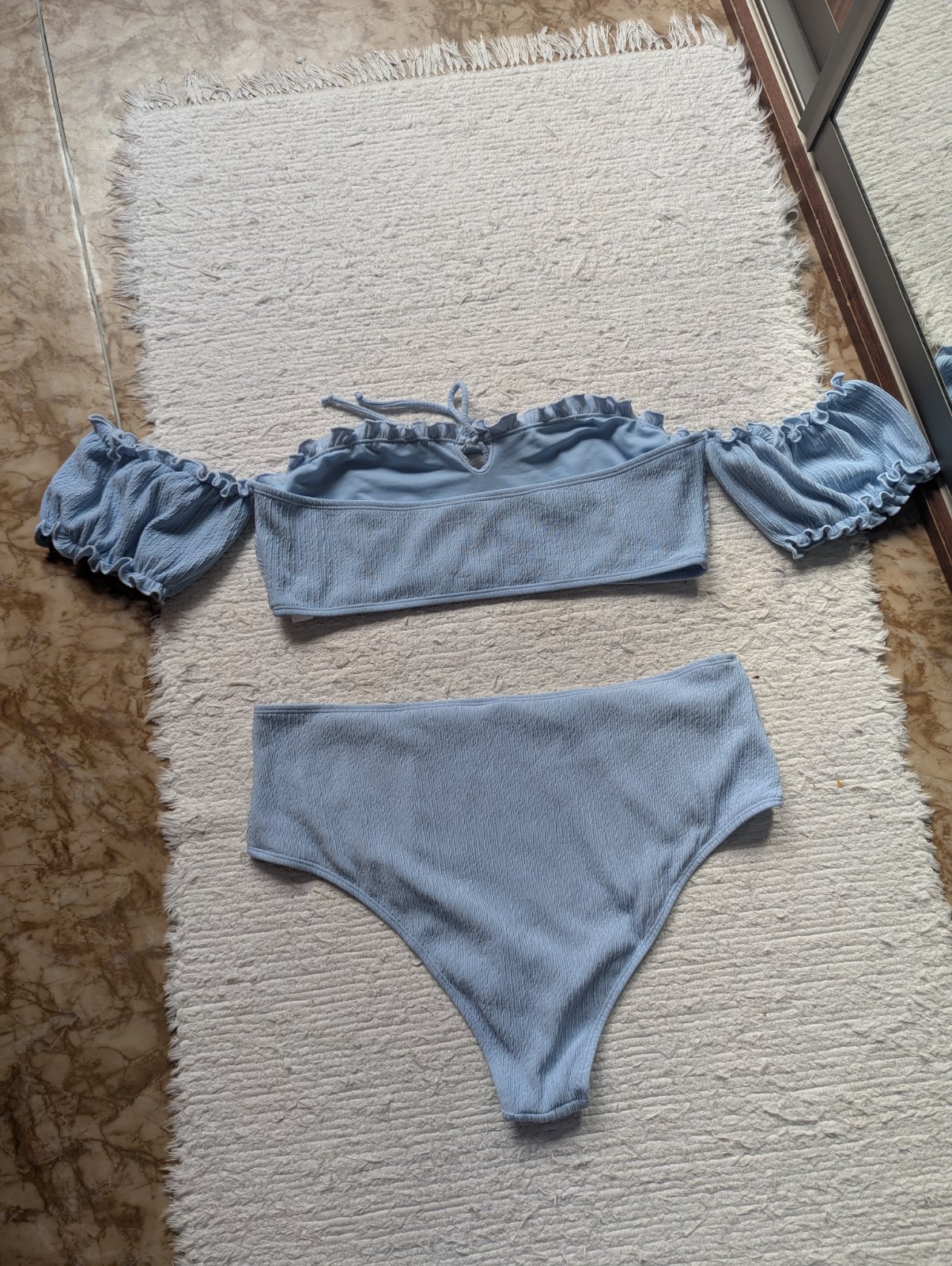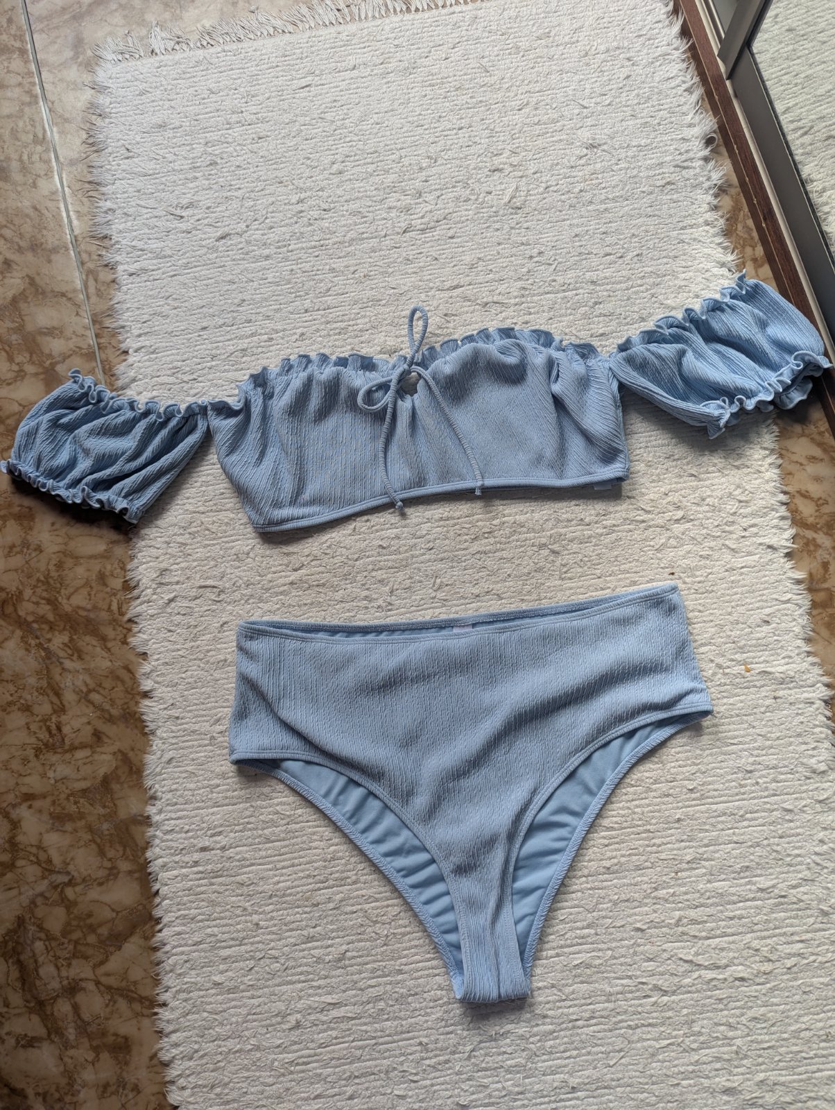 Dvojdielne plavky, veľkosť je uvedená 46 ale srdia na číslo 46/48. Spodok plaviek na vyšší pás (zakryje bruško).