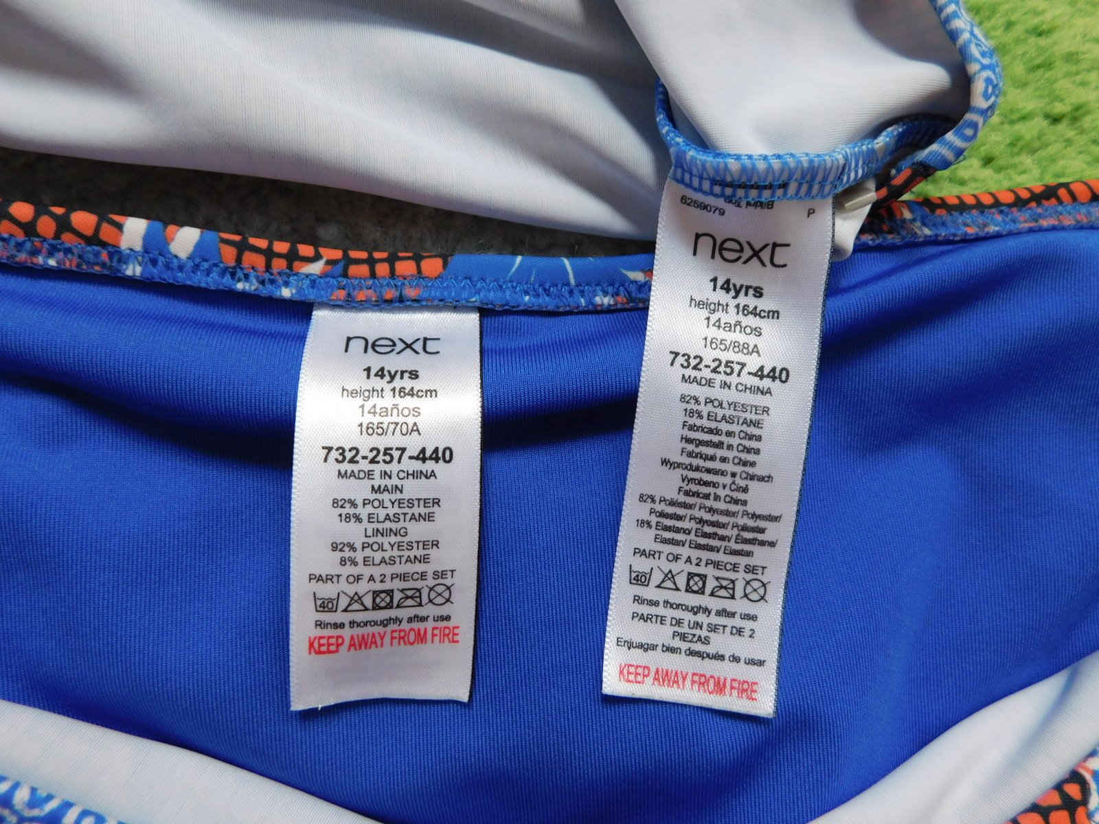 predám bikiny Next s volánom, veľ. 164 na 14 rokov, nastaviteľné ramienka, nosené málo v bezchybnom stave, vrch šírka dole 31 cm /pazuchy 34 cm, spodok pás 36 cm, výška 23 cm, cena 9,- plus pošt.