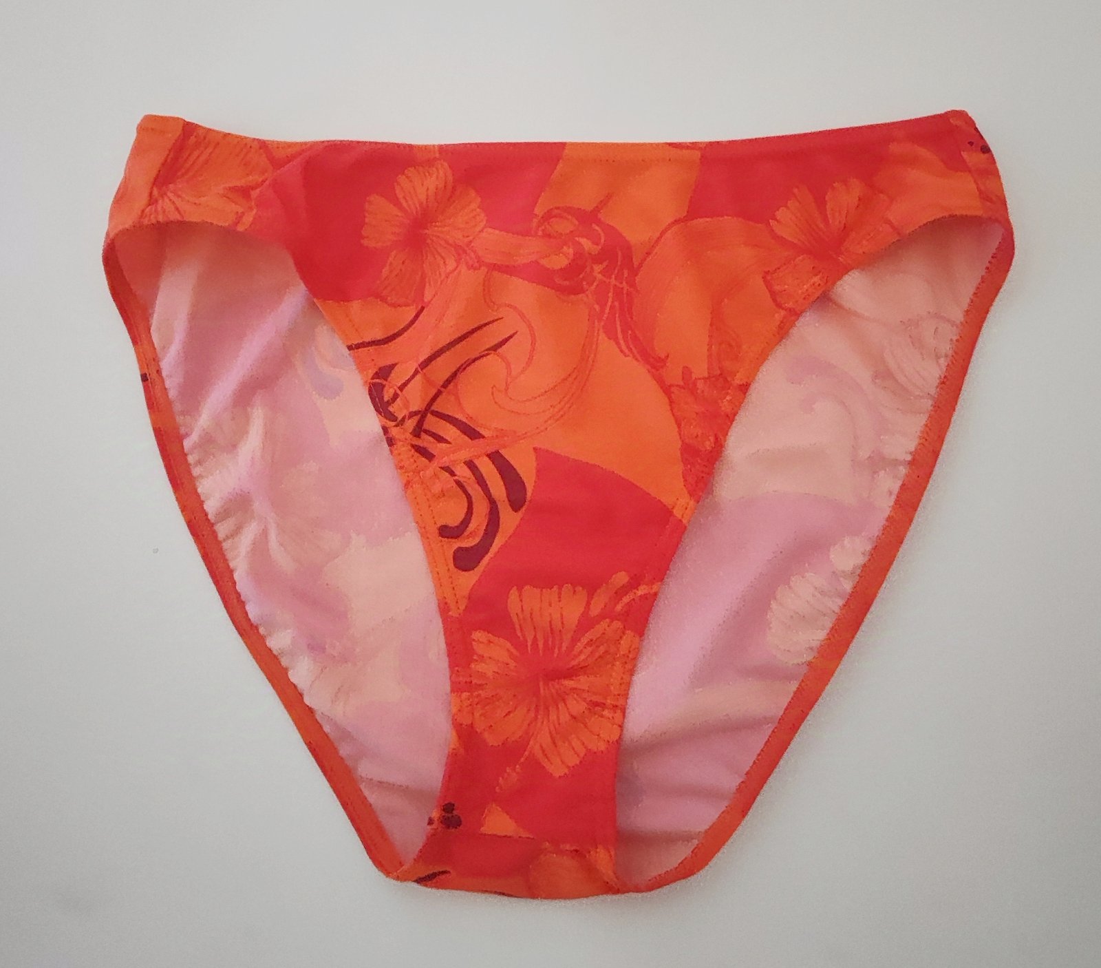 neznosený spodok,krásna farebná pestrá letná kombinácia,top stav a kvalita,sýto ružovo pomarančová farba,uvedená veľkosť 38,ale vhodné aj na 40