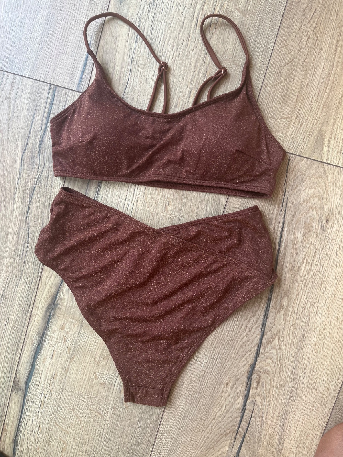 Predám nádherne plavky tmavohnede s odleskom - vrch s vyberateľnými vankusikmi a nastaviteľné ramienka + spodok vysi strih velkost uvedena L ale su mensie sedia na M - stav vyborny použité len 1x ns chvíľku