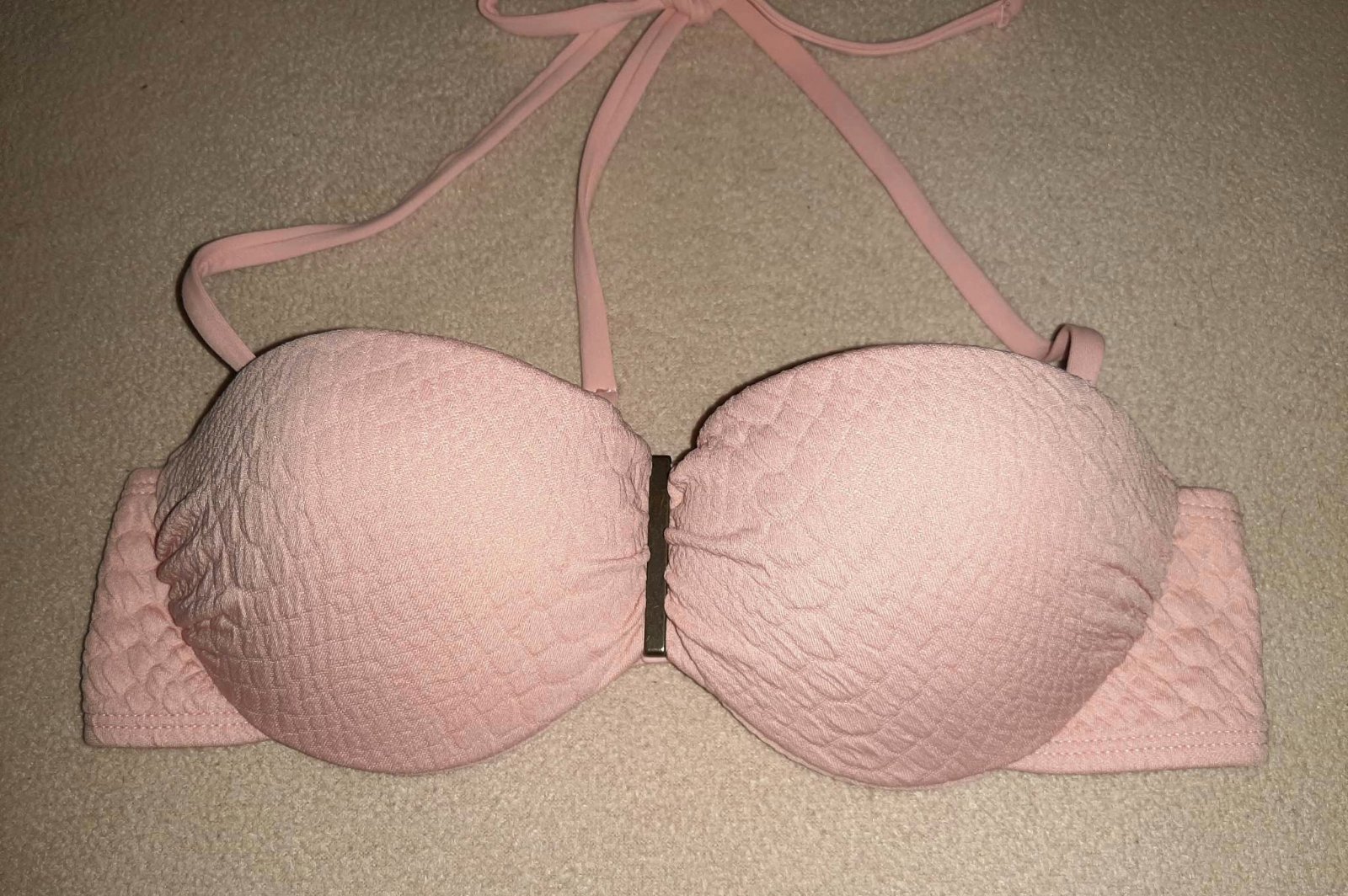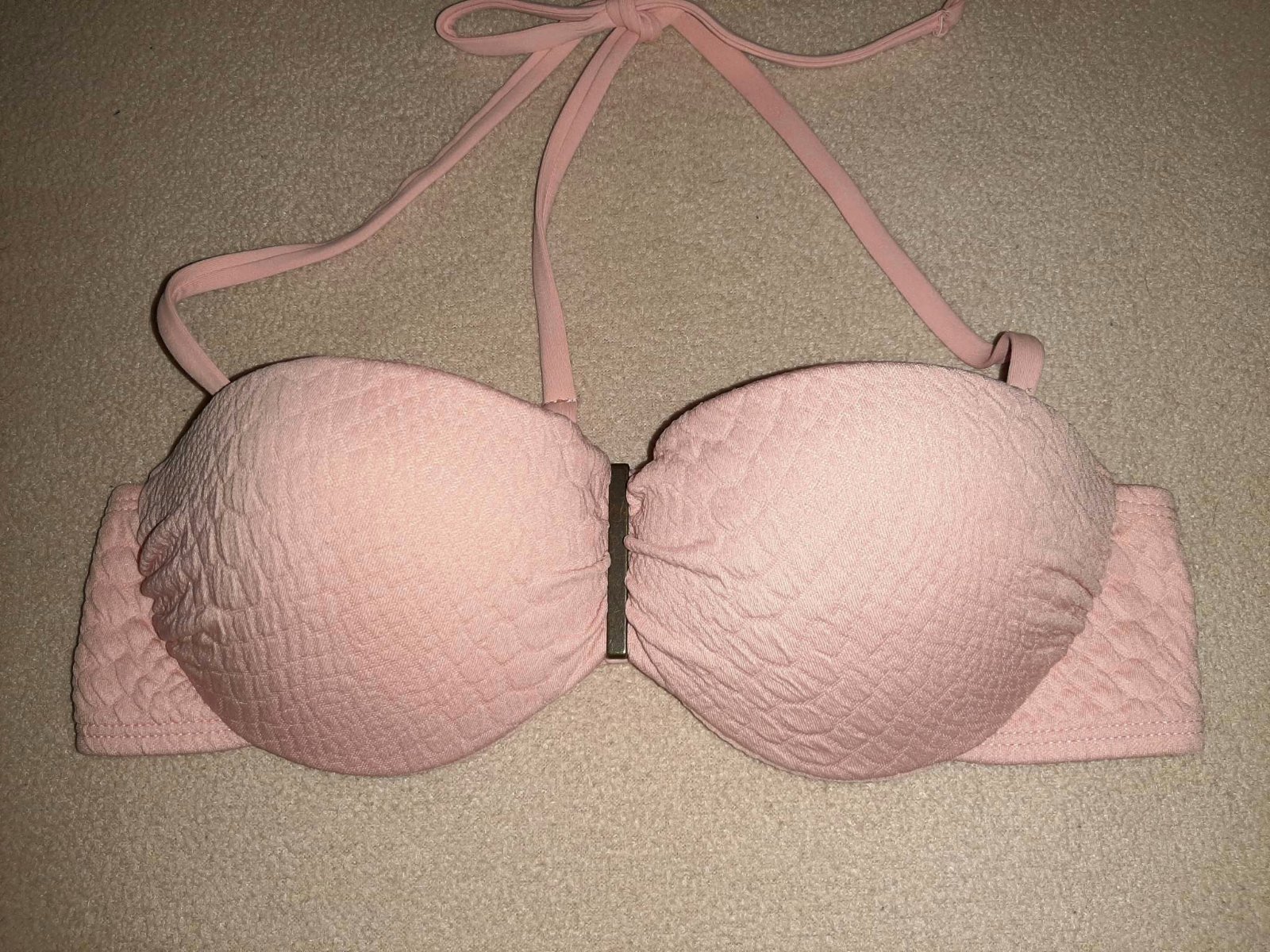 Plavky len vrch oblečené 1x nosené bež poškodené pôvodná cena oveľa viac zadná čínska farby su pekné 👌 plavky luxusná