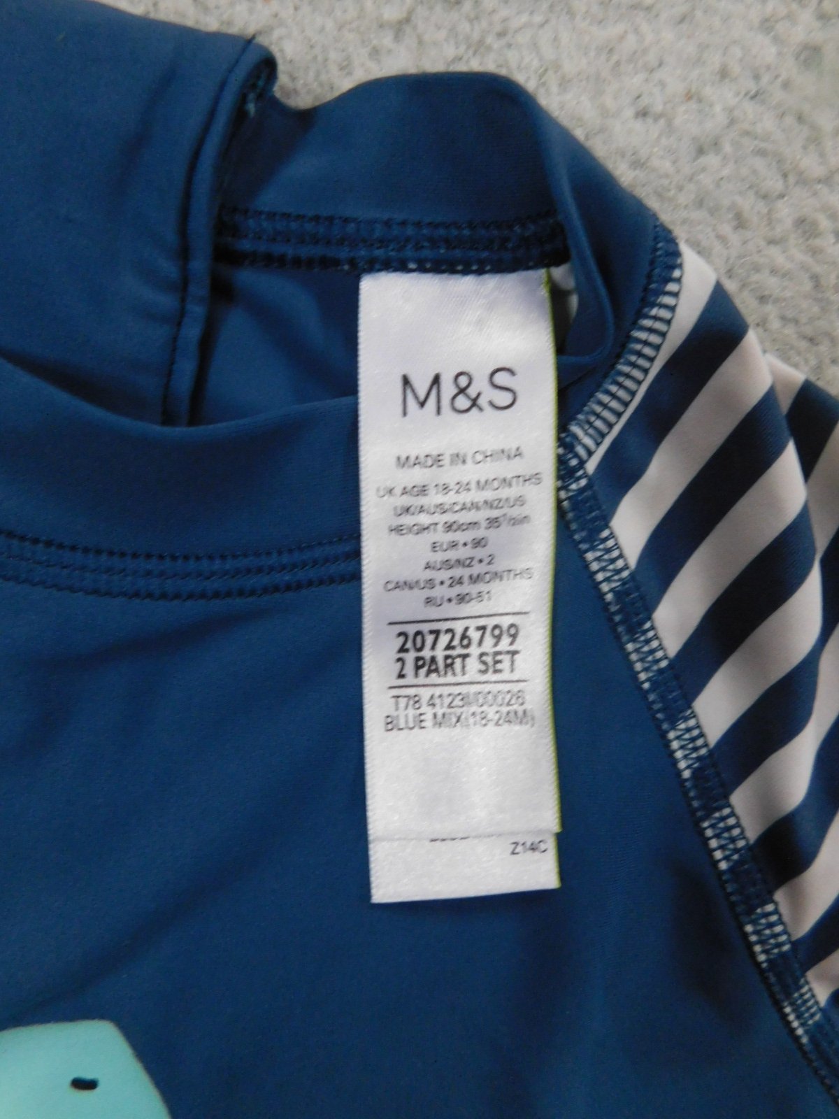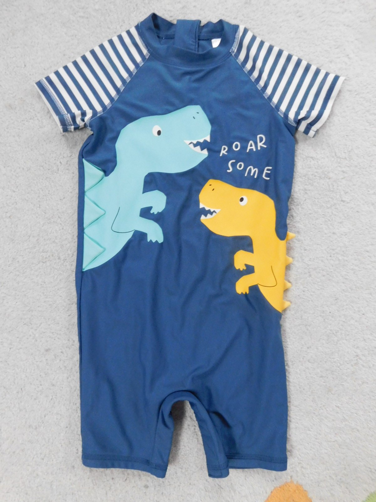 predám plavkový overal do vody zn. Marks & Spencer, píšu na 2 roky, ale je väčší 98-ka, dĺžka od pleca k rozkroku 49 cm, šírka 28 cm, UV filter 50+, dá sa rozopnúť medzi nohami, top stav, cena 9,- plus pošt.