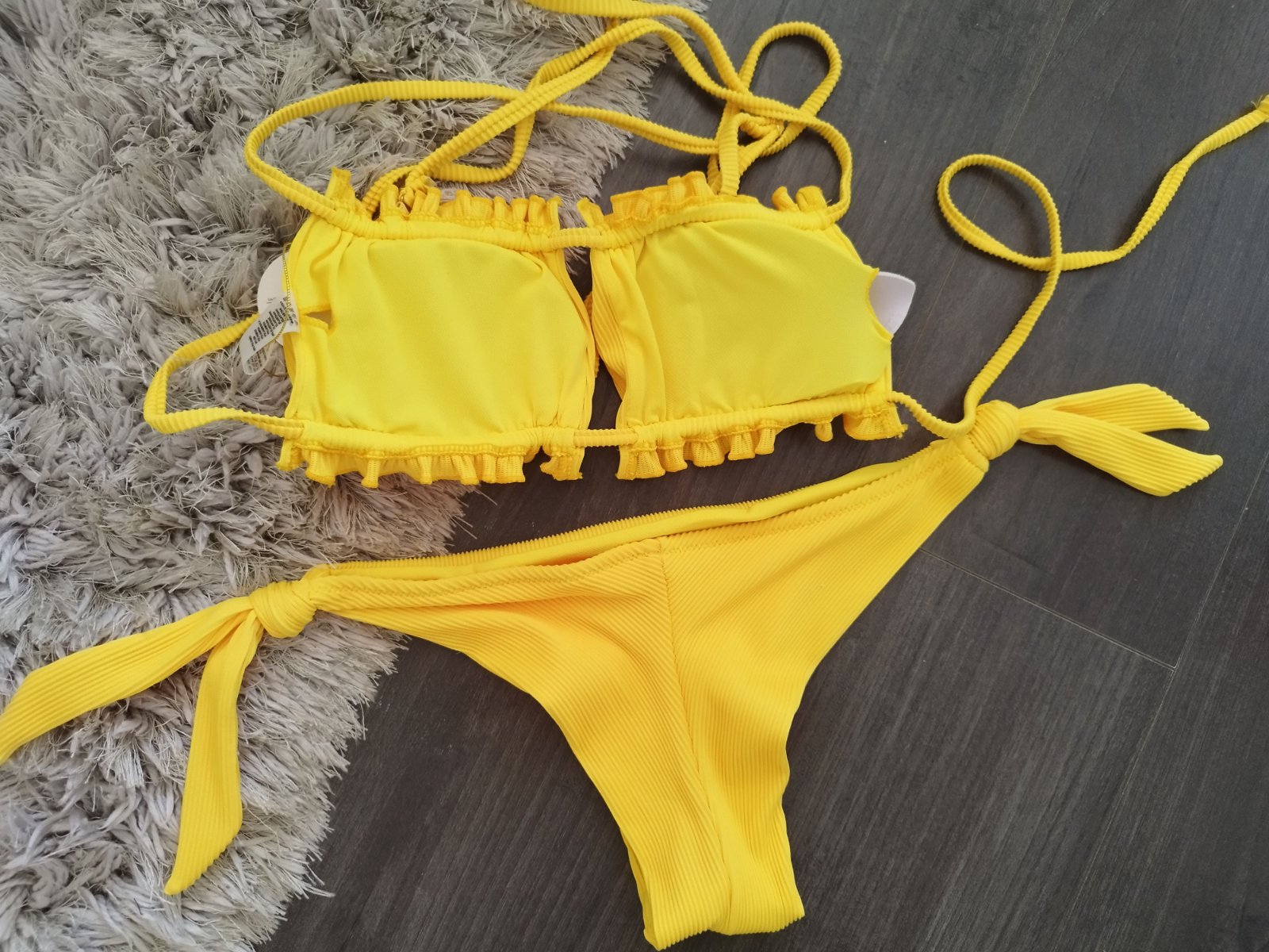 VÝPREDAJ POSLEDNY´KUS. Nádherné plavky brazílky s vkladacími vypchávkami. Podprsenka má otvory do ktorých sa dajú vkladať akékoľvek vypchávky alebo nosiť aj bez vypchávok. Skvost medzi plavkami v ktorých budeš na pláži či kúpalisku neprehliadnuteľná. Podprsenka má ramienko okolo krku ktoré sa dá nastavovať aj odopnúť. Vzadu na viazanie. Nohavičky sú brazílky.
