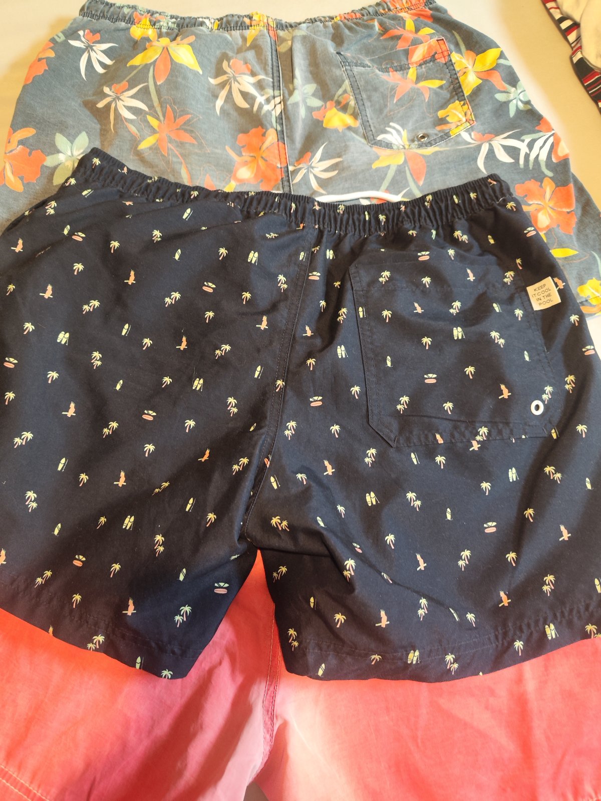 2.tm.modré s palmami Tom Tailor L ako Nové: pás 2x 45-51 cm,dl:39cm - cena 20 €