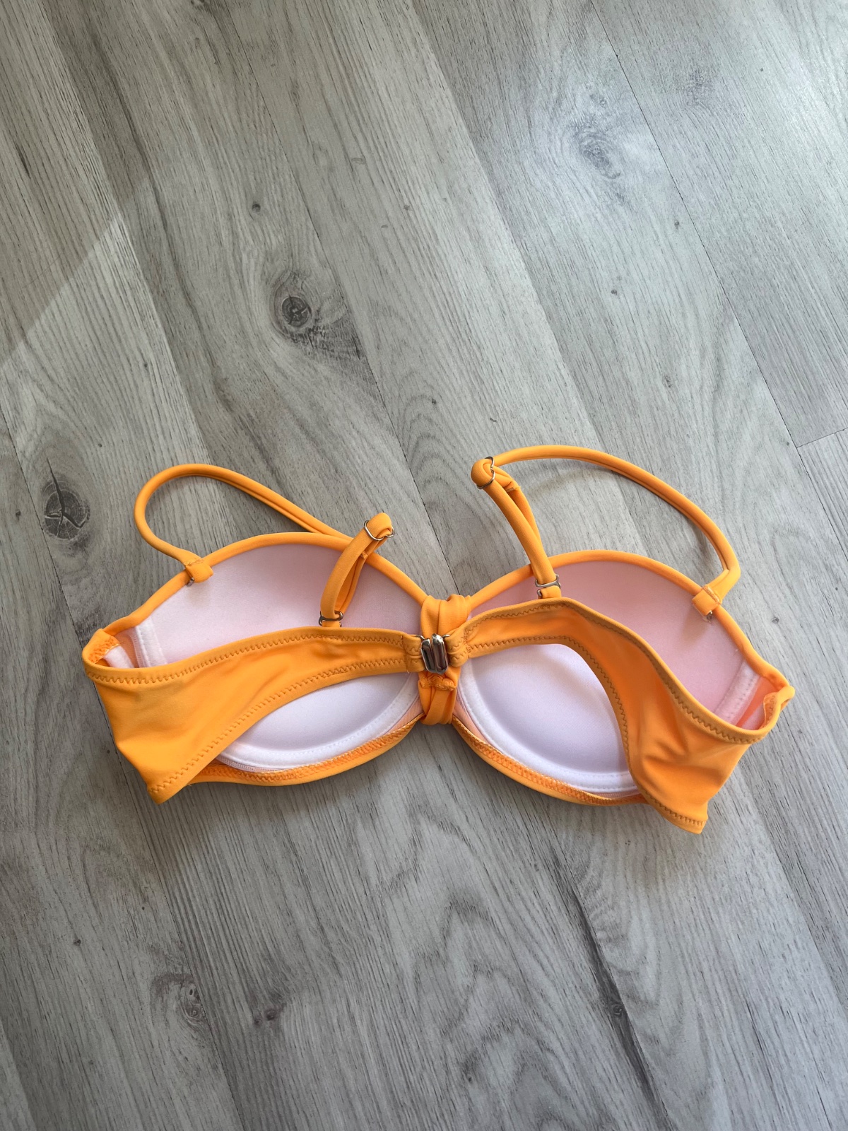 Predám čisto nové dvojdielne plavky. Krásne výrazná farba. S vyberateľnými vložkami, spodok tangáče.