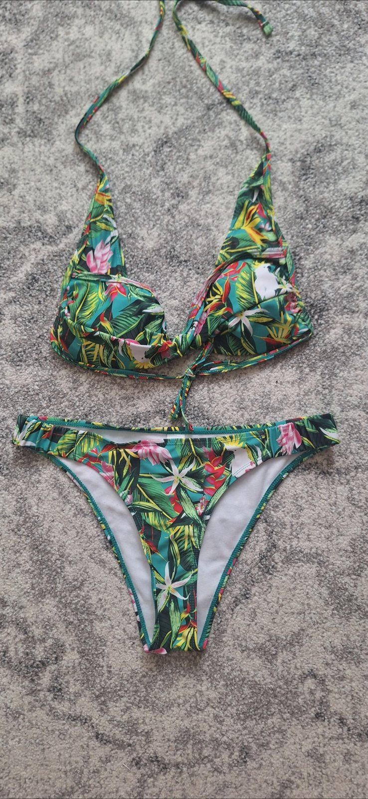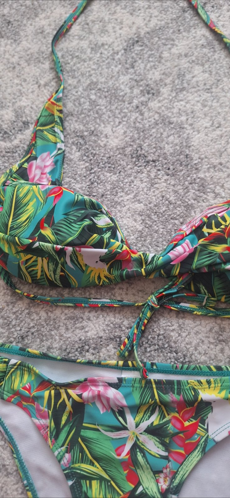 Plavky s viazačkami. Vrchný diel je vystužený s vyberateľnými vankúšikmi. Nosené, no nemajú žiadne poškodenia. Pôvodná cena 35eur.