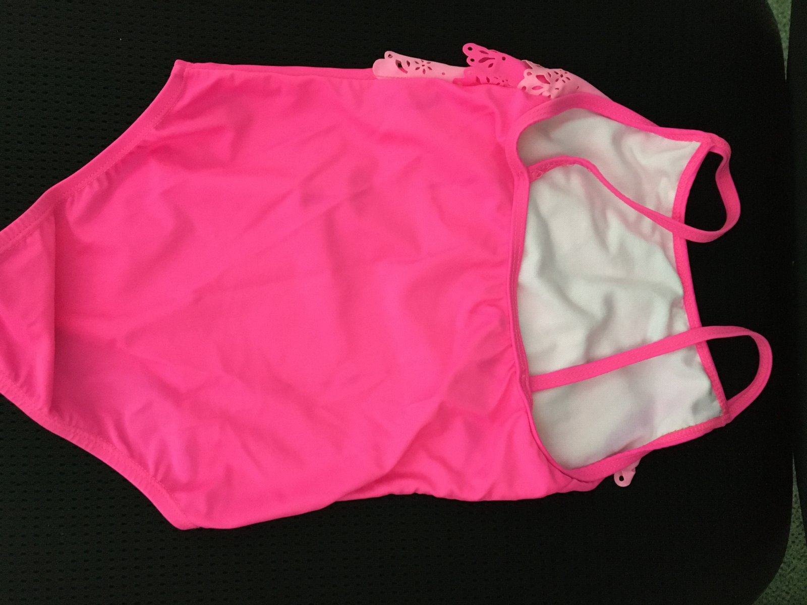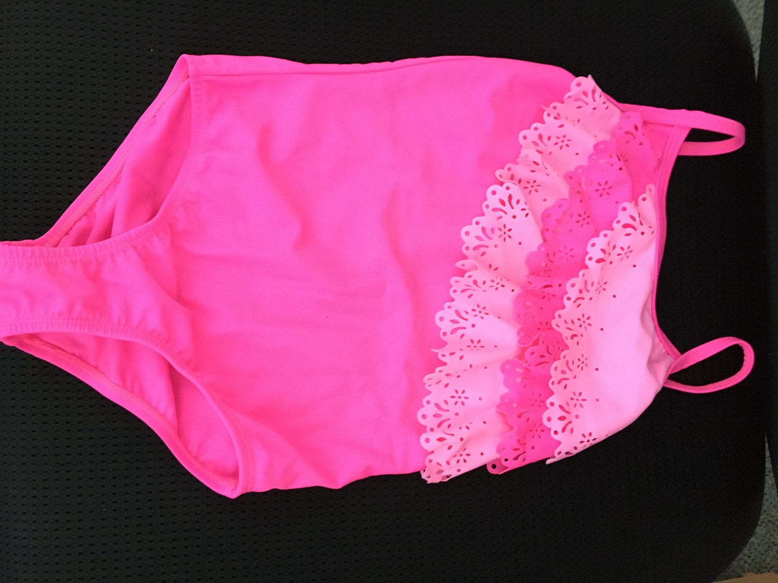 Celé dievčenské plavky s čipkovými volánikmi, veľmi zachovalý stav.