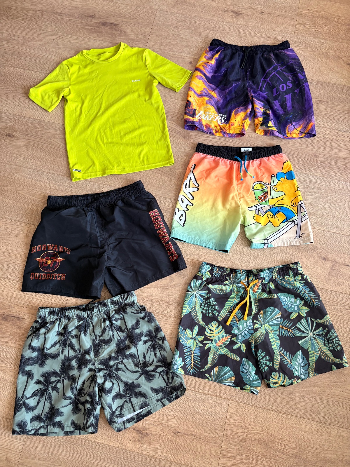 Ponúkam plavky, cierne a tie dvoje pod nimi sú HM, Fialive NBA sú 152 a UPF tricko 50+ a ešte Simpsonovci plavky. Odber spolu,