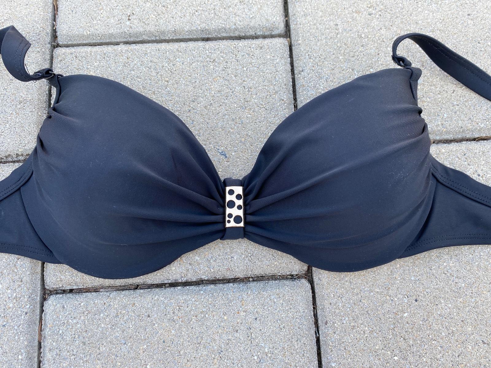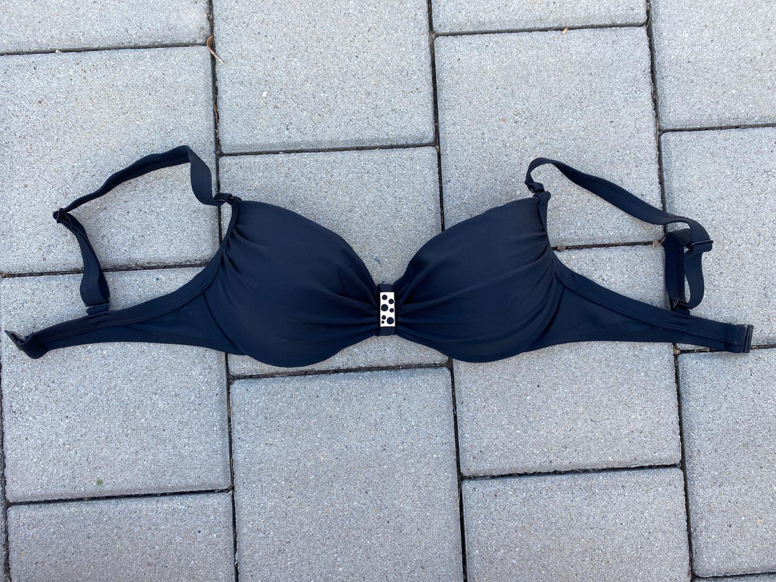 Krásne čierne plavky , spodok má vysoký pás. Boky mierne nariasené. Sú v top stave , 2x oblečené. Na spodnom dieli je ešte vysačka , ten bol len odskúšaný.