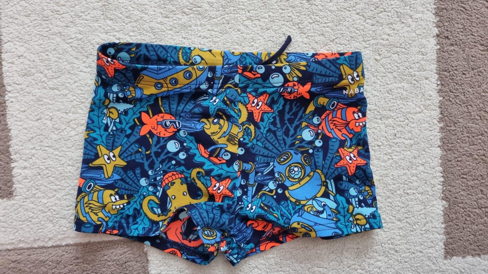 Raz oblečené plavky z decathlonu v top stave. Velkost udavana 141-150cm, na 10-11 rocne deti. V pase v klude 30 cm, dlzka 32,5 cm