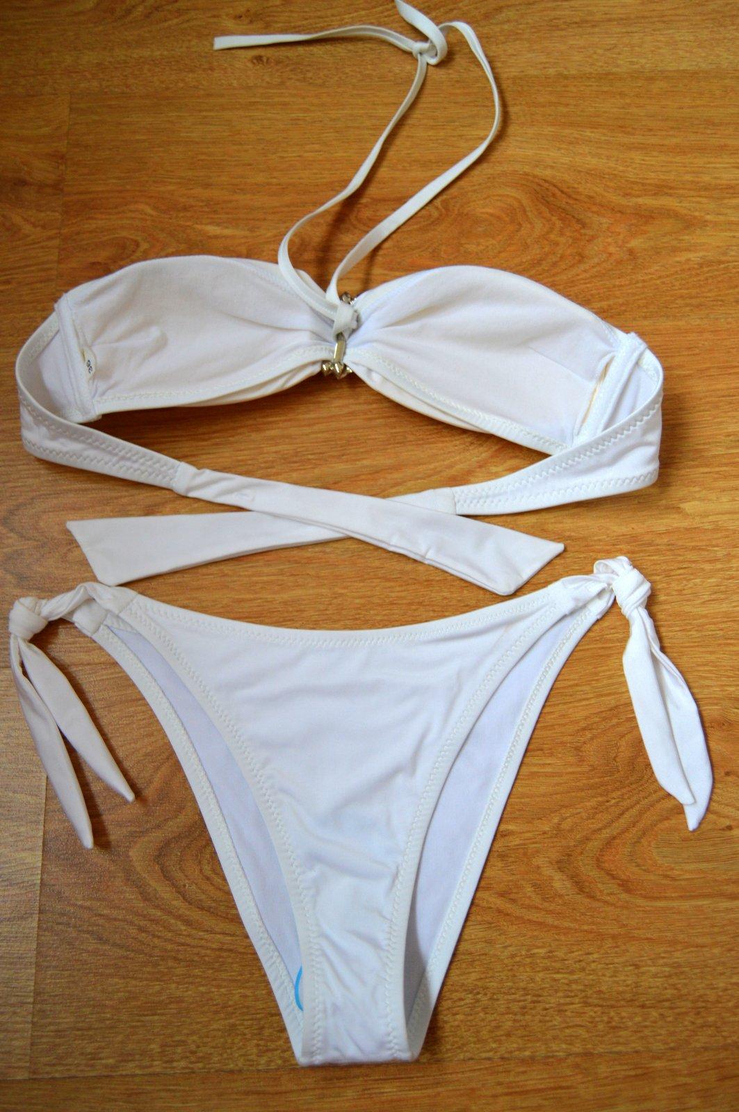Podprsenka s pevnými košíčkami sú zdobené vzorom, v zadu na zaviazovanie. Podprsenka je vystužená s vyberateľnými vypchávkami tvarujucími poprsie. Odnímateľné výstužné výplne košíčkov.