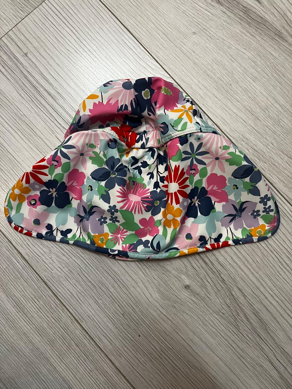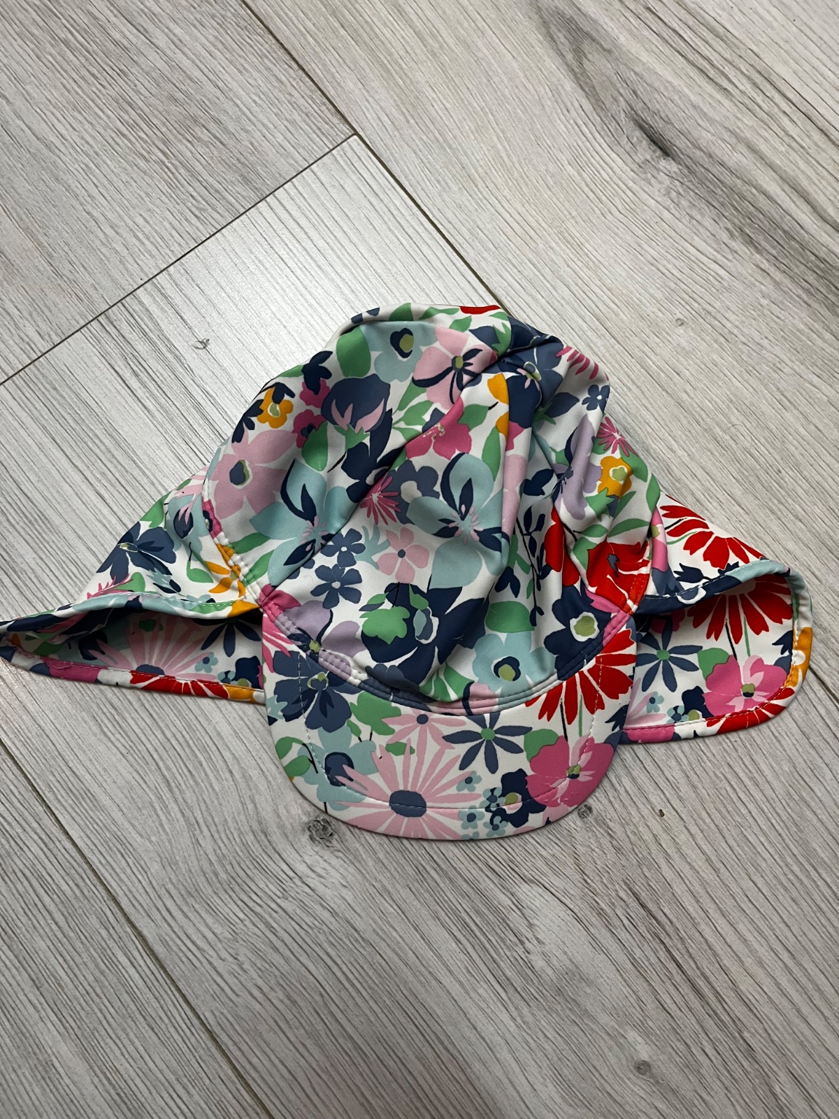 Predám farebny legionársky klobúk so šiltom do vody so vzorom kvetov. Ochrana UPF 50+. Značka: Next, veľkosť: 92 (1,5-2 roky). Klobúk nebol nikdy použitý v mori, na silte ma drobné poškodenie (vid foto).