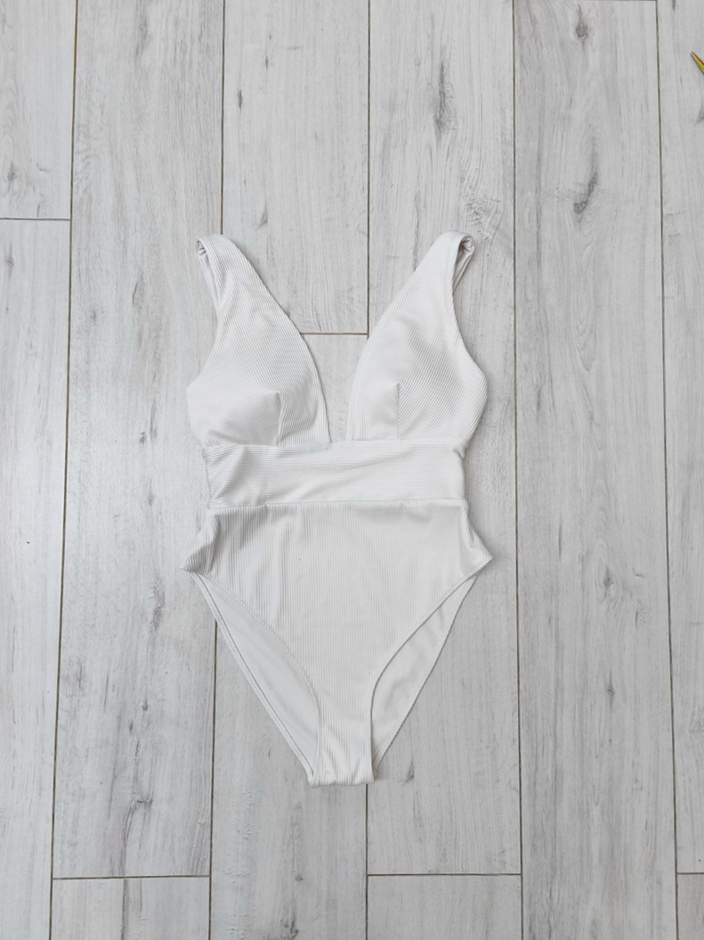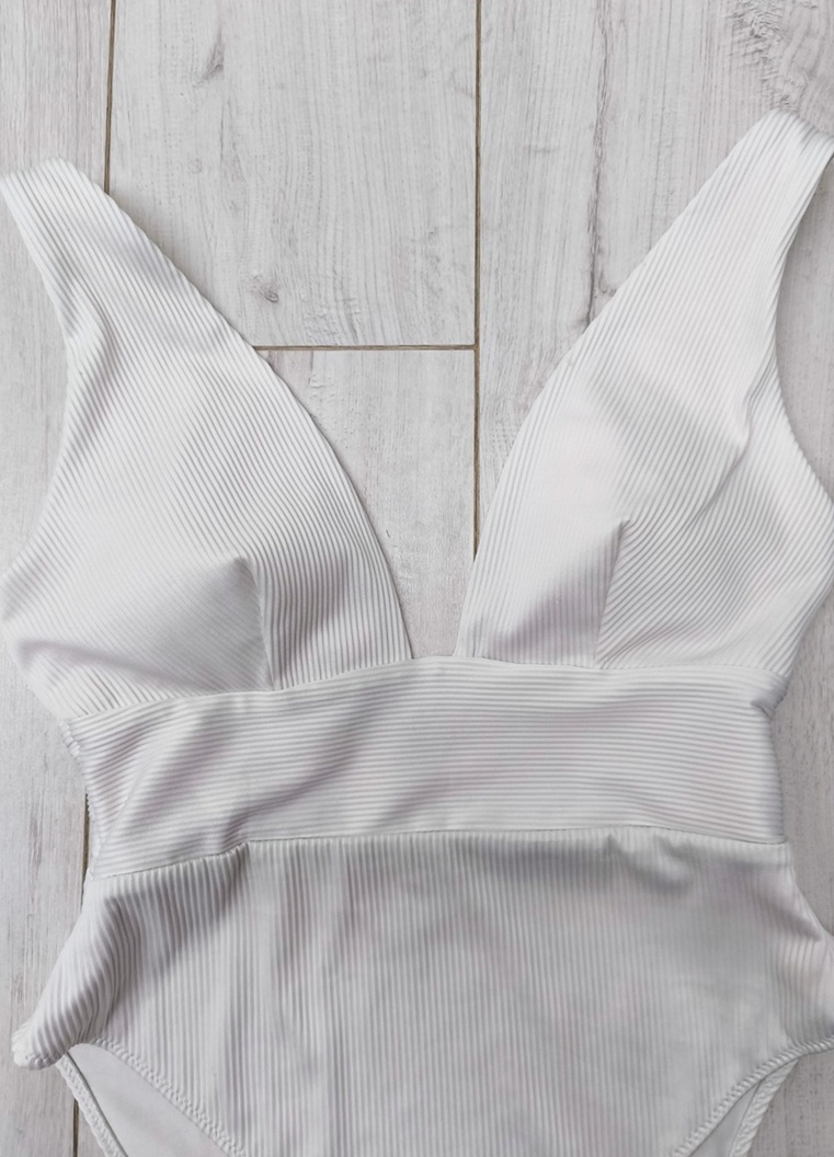 Ponúkam tieto celé jednodielne plavky zn. H&M, vrúbkovaného materiálu, s odnimatelnou vystuzou na prsiach, veľmi chic strih, v perfektnom stave, veľkosť 42.