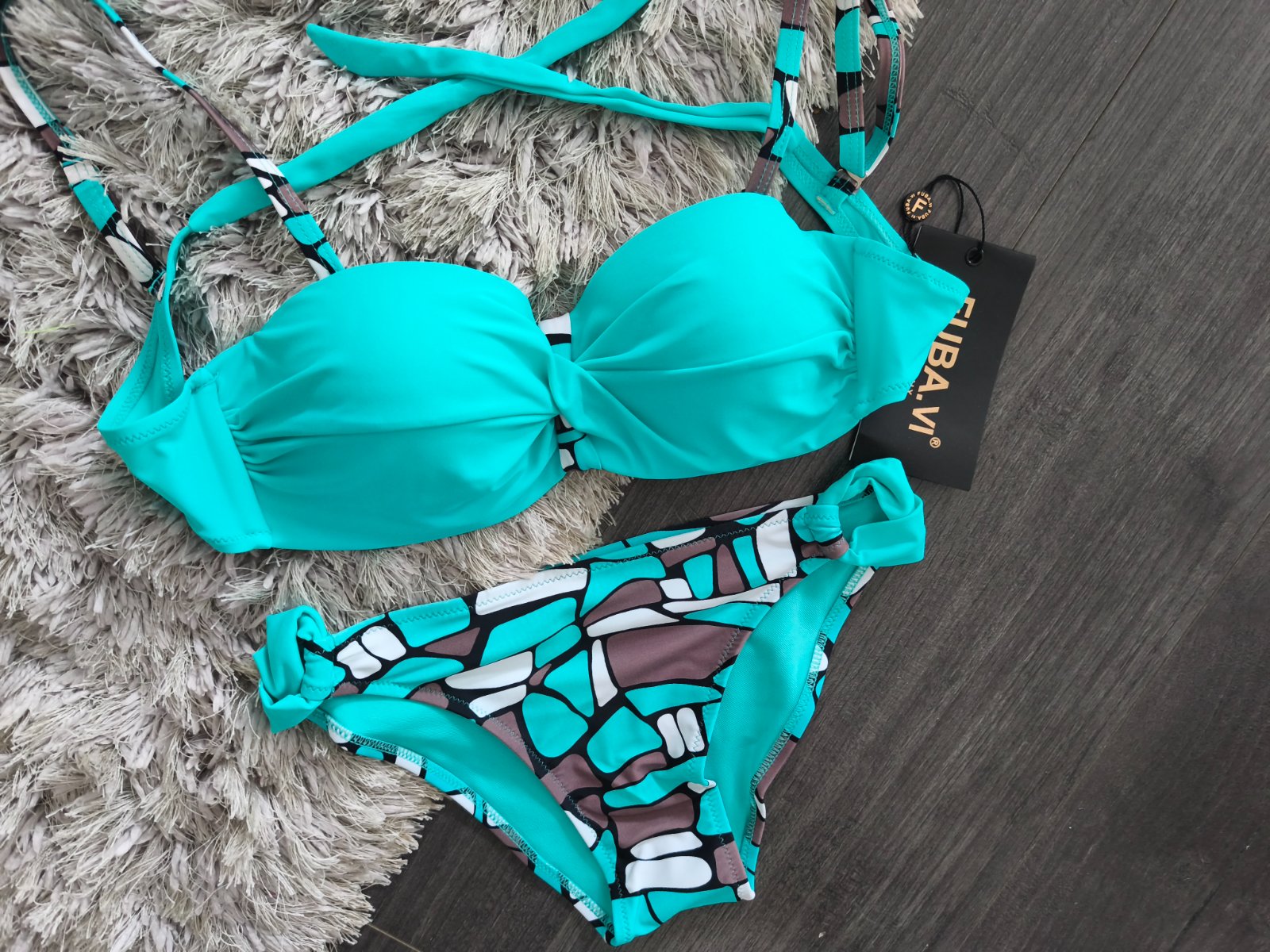 Vystužené push up plavky s nastaviteľnými a odnímateľnými ramienkami. Nohavičky klasického strihu.