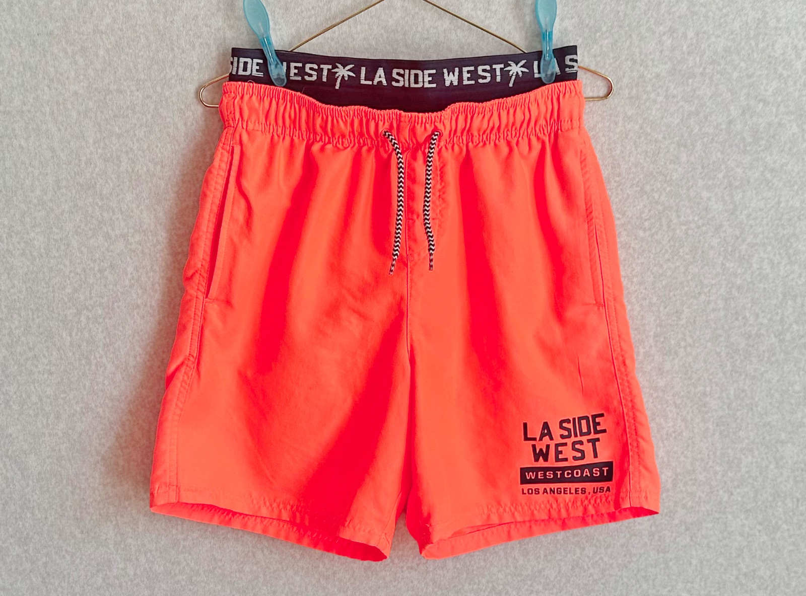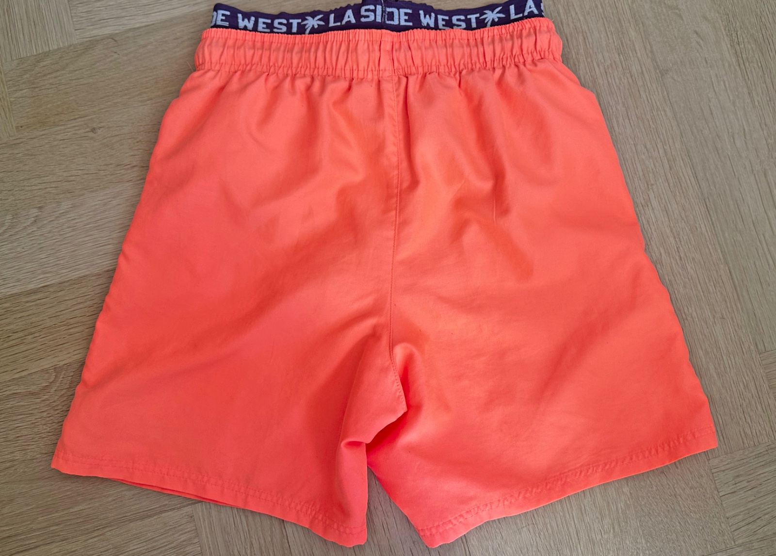 Plavky majú v páse pružnú gumu a uťahovaciu šnúrku. Vo vnútri sú slipy z bielej sieťky. Po bokoch sú vrecká. Materiál je hebký, nenasiakavý. V peknom stave.