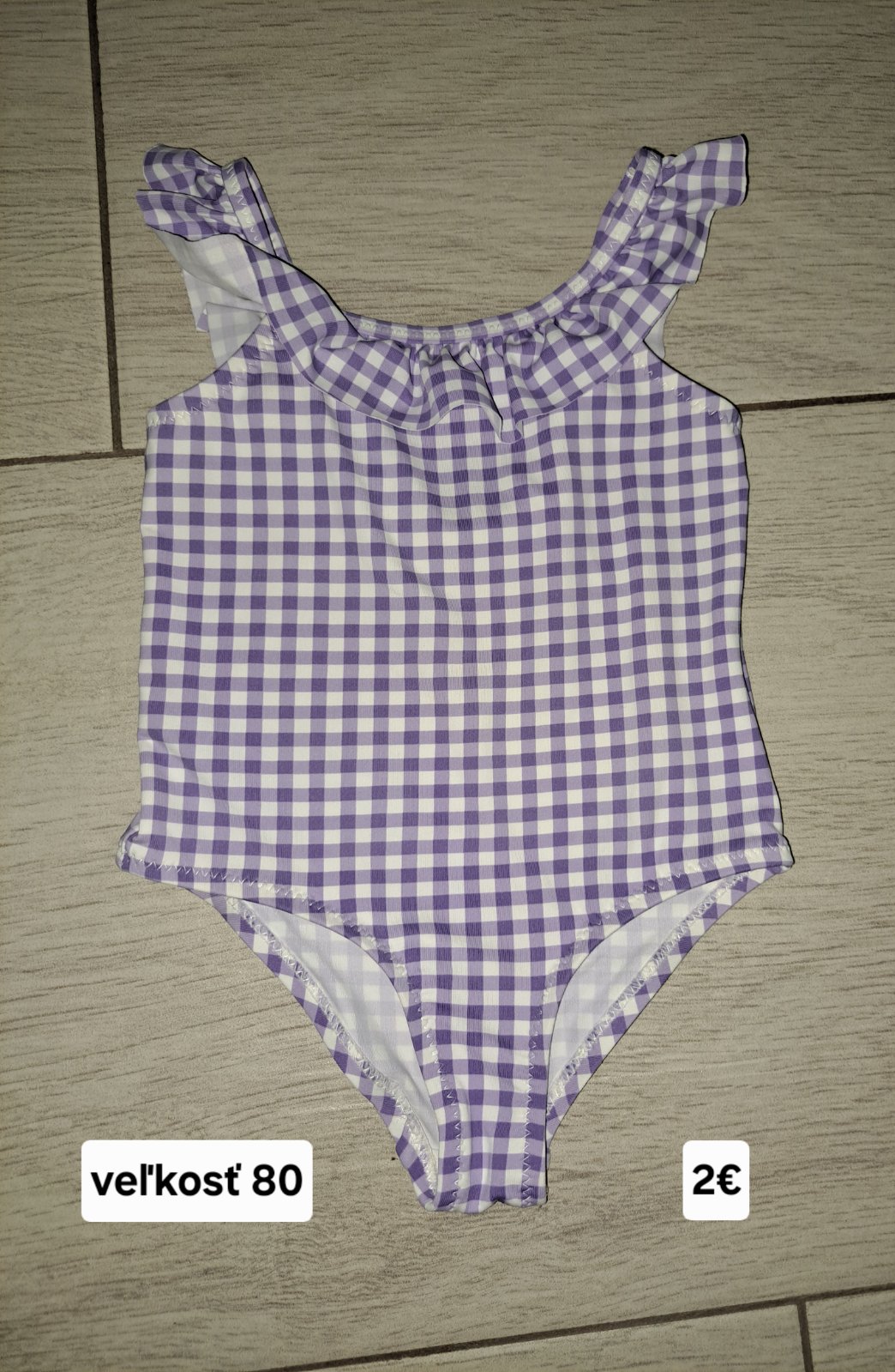 Krasne plavocky- nove, s visackami. Maju ochranny fliter UPF40+. Su take ruzovo-fialove. Velkost je uvedena od 6-12mesiacov, cize je to velkost 74,80. Rozmery: dlzka od pleca po rozkrok: 37cm, sirk...