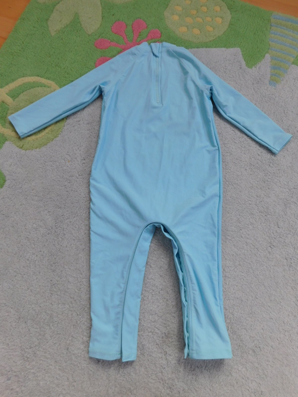 predám plavkový overal do vody Marks & Spencer, píšu na 92 ale skôr na 98, na 3 roky, pár krát oblečený vo výbornom stave, len jedno škrabnutie vpredu- posledná detailná fotka, dĺžka od pleca k rozkroku 46 cm, šírka 29 cm, celková dĺžka 69, s UV 40+, dá sa rozopnúť medzi nohami, cena 8,- plus pošt.