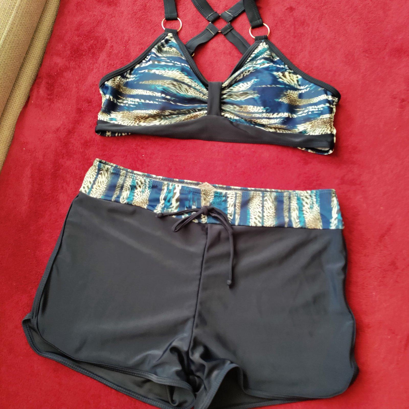 Nové,nenosené plavky velL , nohavičky pás 37-44cm,dl bok 26cm, podprsenka 37-45cm.maju prsné vypchavky,nesadli mi,cena 9,50€ plus poštovné