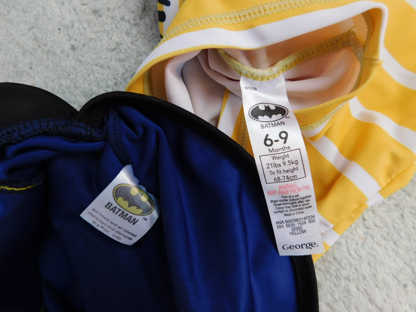 predám ochrannú súpravu do vody tričko Batman George, veľ. 6-9 mesiacov, málo nosené v bezchybnom stave, tričko dĺžka 29,5/31,5, šírka 23,5, UV 40+, a legionárku Batman obvod 48 cm, riaďte sa obvodom hlavy, obe v bezchybnom stave, cena spolu 6,- plus pošt.