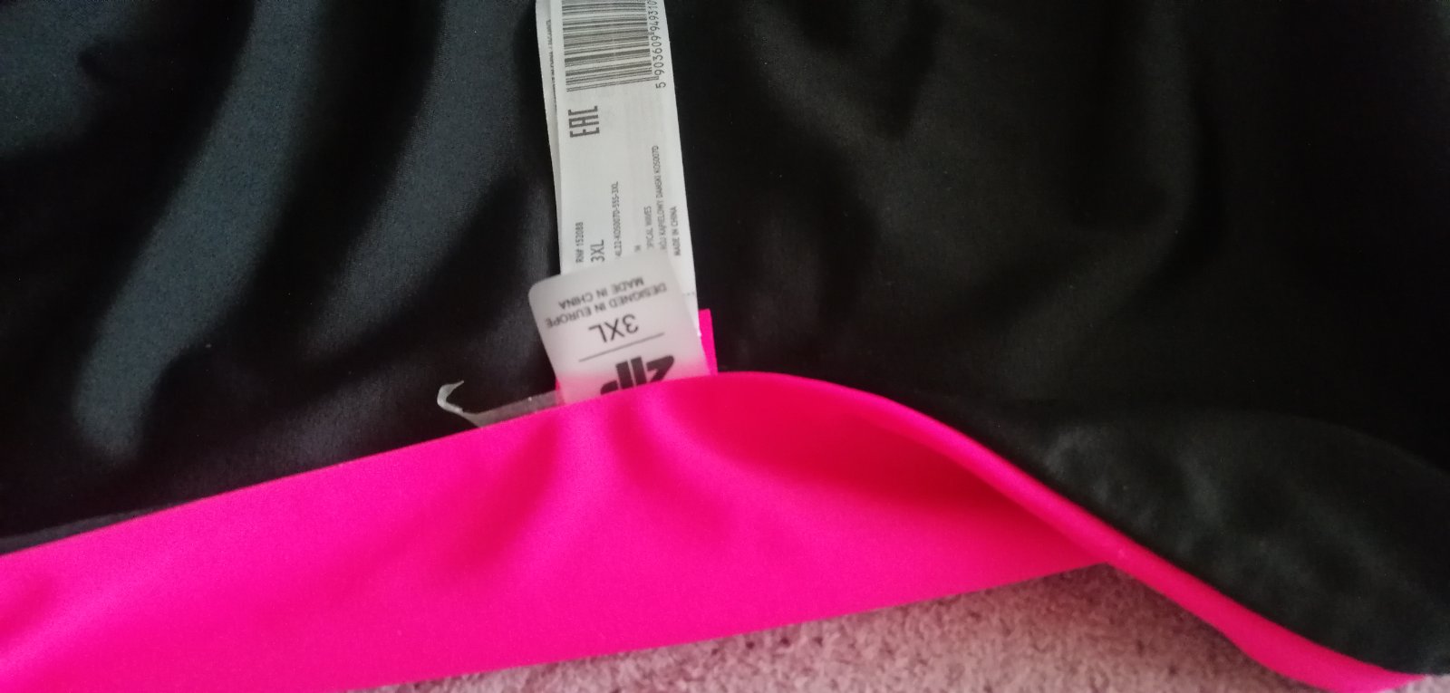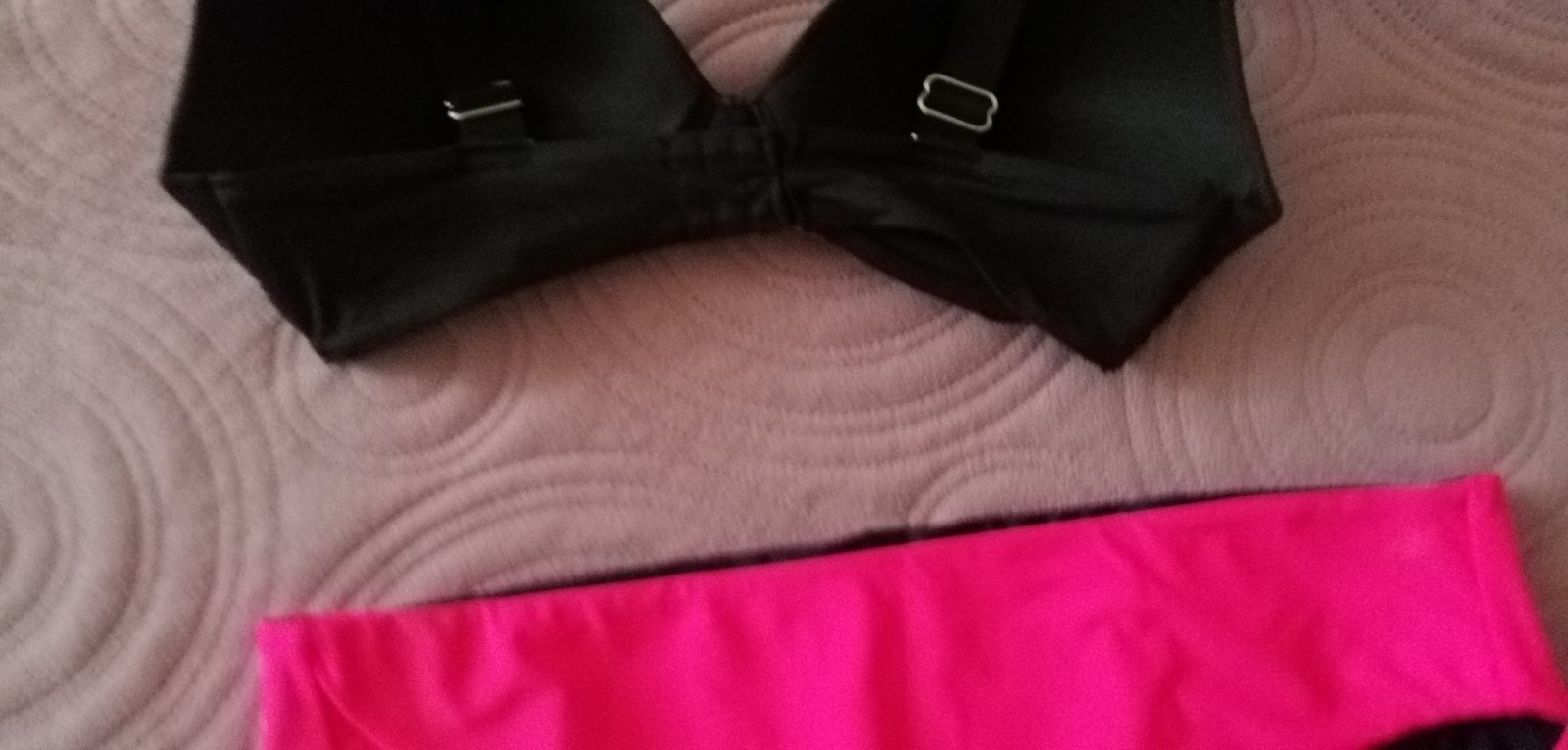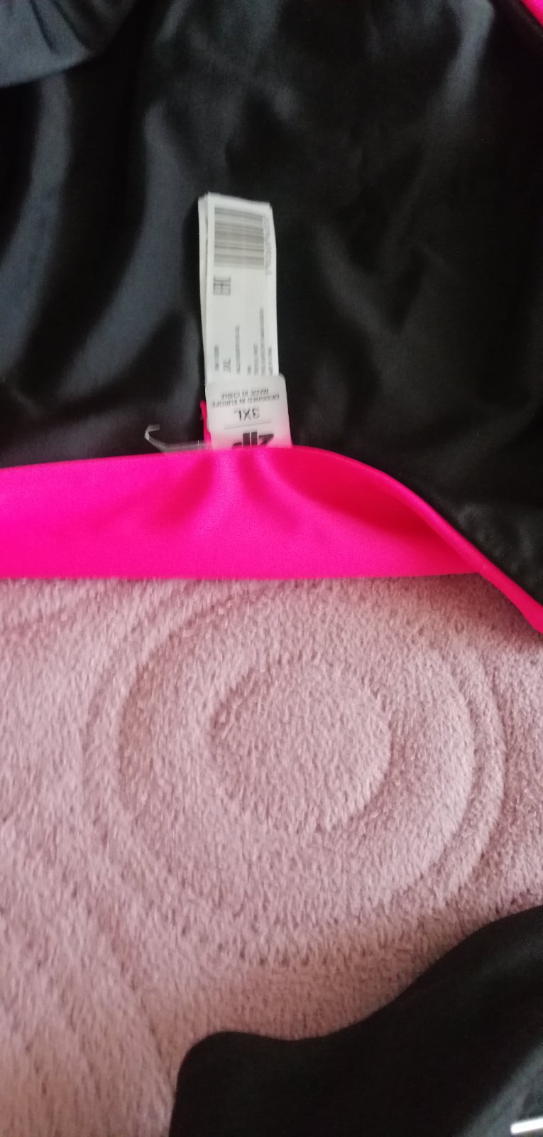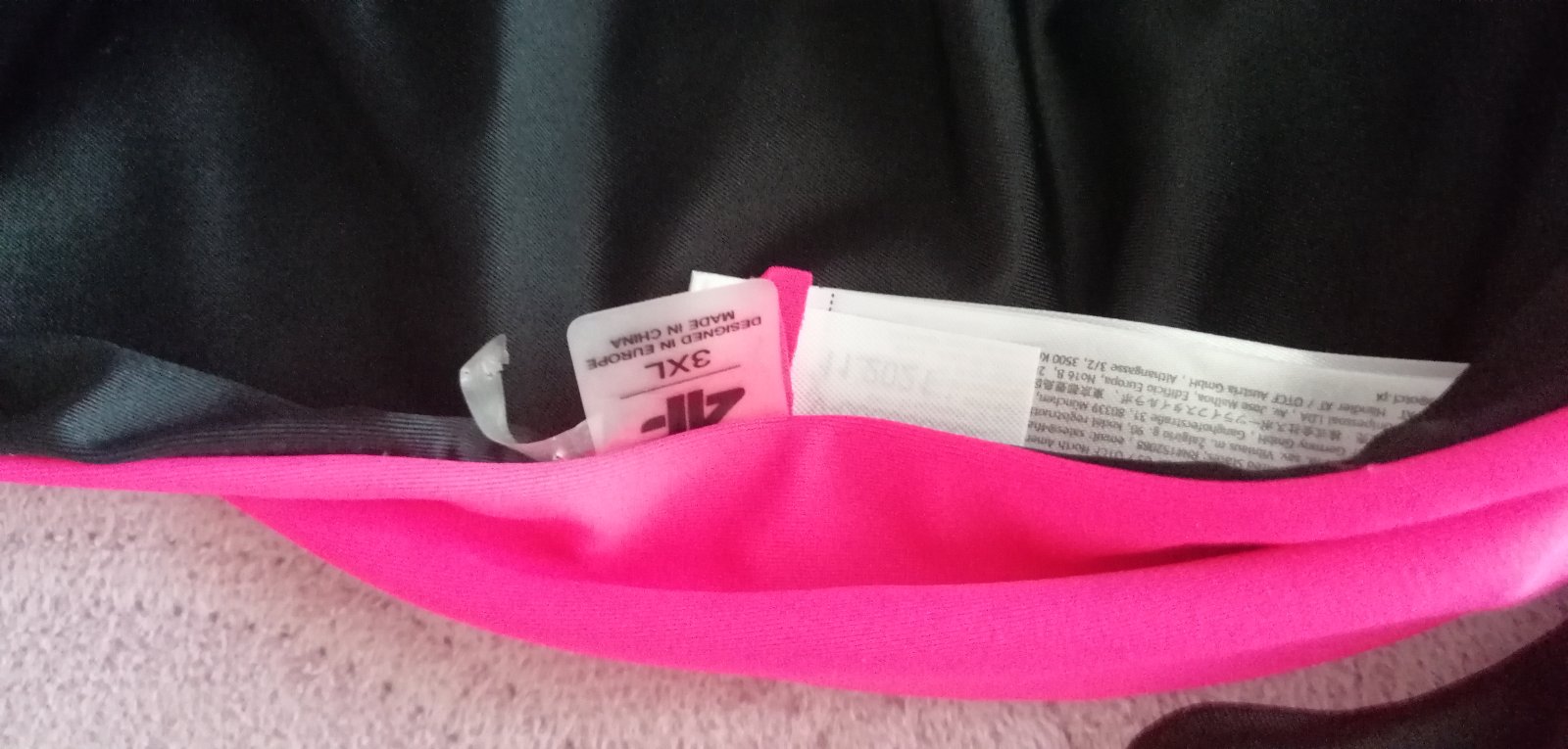 spodok obrovský pre mňa, na široké boky, väčší zadok tak 46/48, tak XXL, aj 3XL menšie, vrch je pevný, pohodlný, širšie pruhy, príjemná látka jemná, spodok 4F značka, krásne žiarivé, mne strašne veľké, aj keď mam širšie boky aj zadok, aj tak veľké. Vrch, podprsenka je šitá na pevno vzadu.