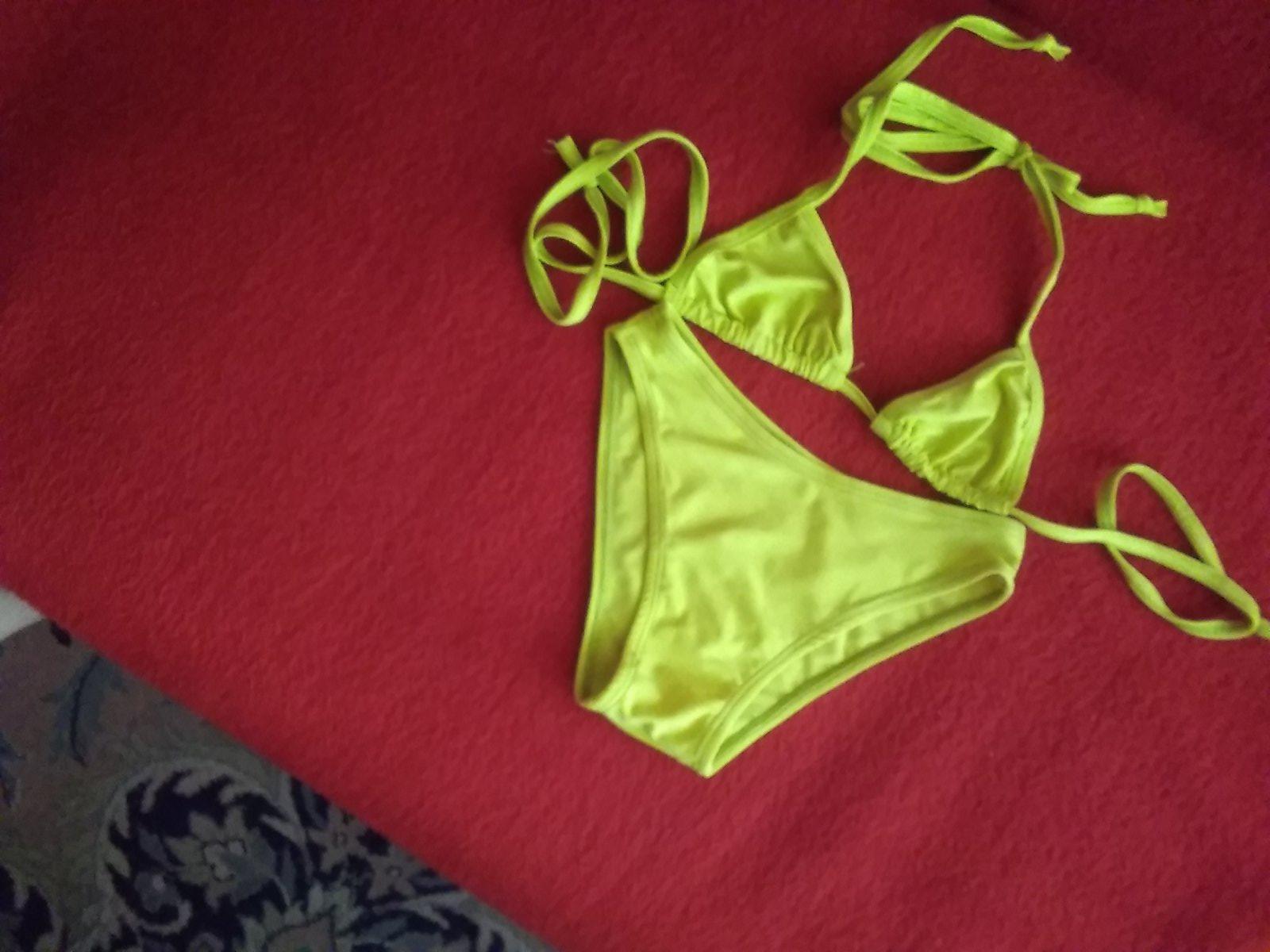 Ponúkam nosené krikľavo žlté dvojdielne plavky 116 a spodný diel s volánikmi 122 (veľkostne sú cca rovnaké), slovenský výrobok Lena. Pekný nosený stav, ešte dobre poslúžia. Cena spolu 3,80eur.