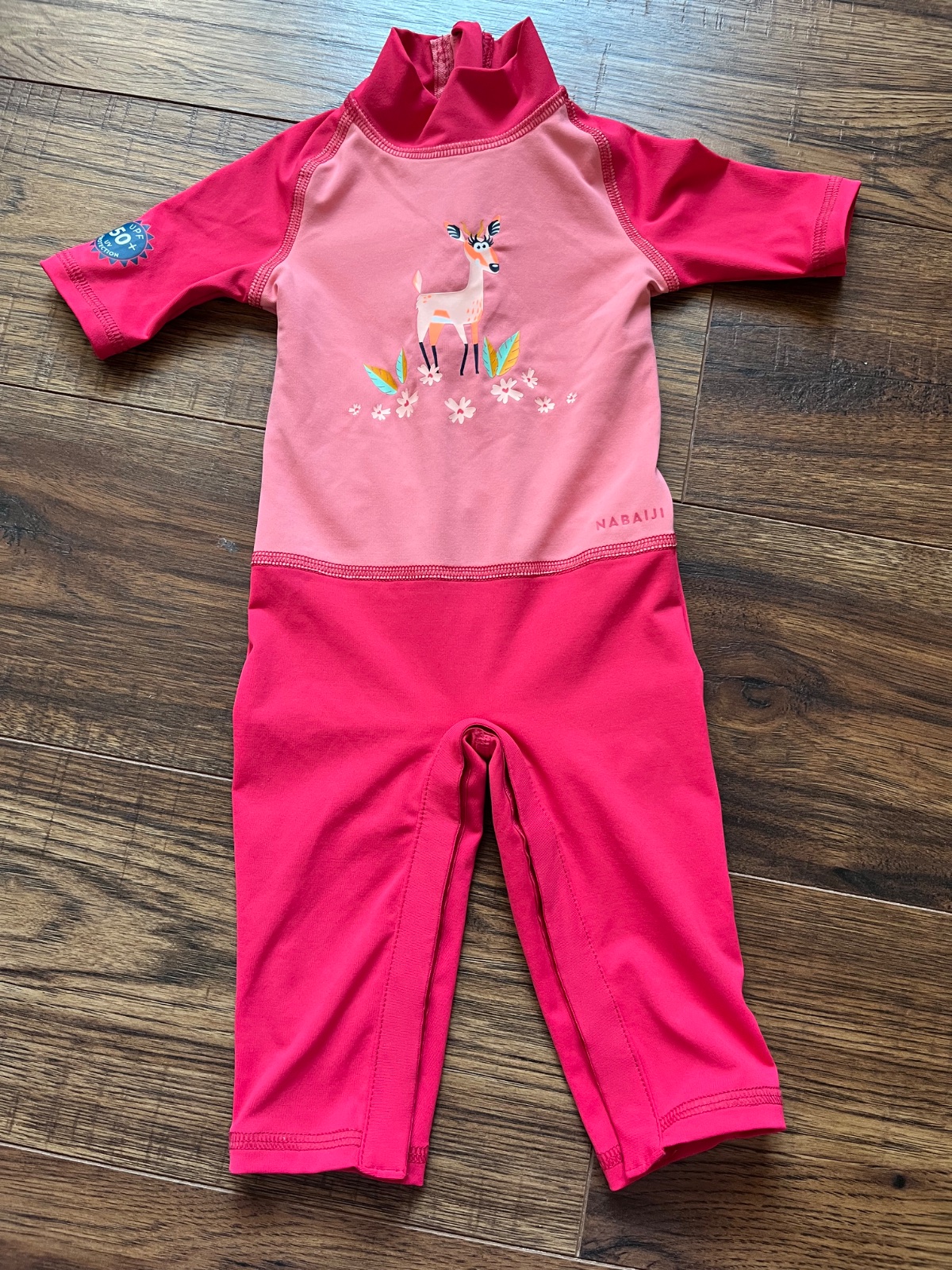 Oblečenie do vody s UV ochranou vo výbornom stave (párkrát oblečené). Ľahko sa oblieka vďaka zipsu na zadnej strane a patentu v rozkroku.