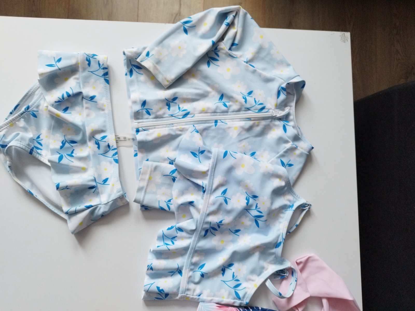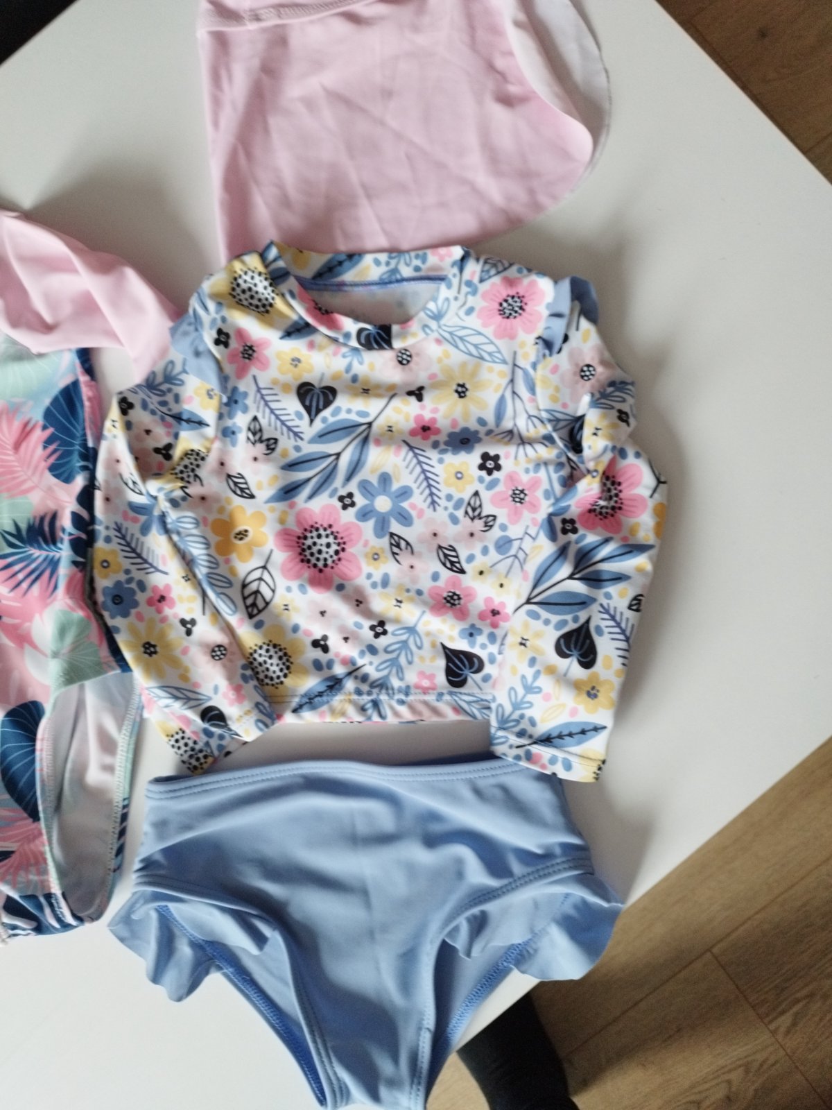 Predam plavky s dlhymi rukavmi, ked chcete Vase dievcatko chranit pred silnym slnieckom pri vode...boli 2x oblečené. Velkost pisana 90-98cm (2-3r).