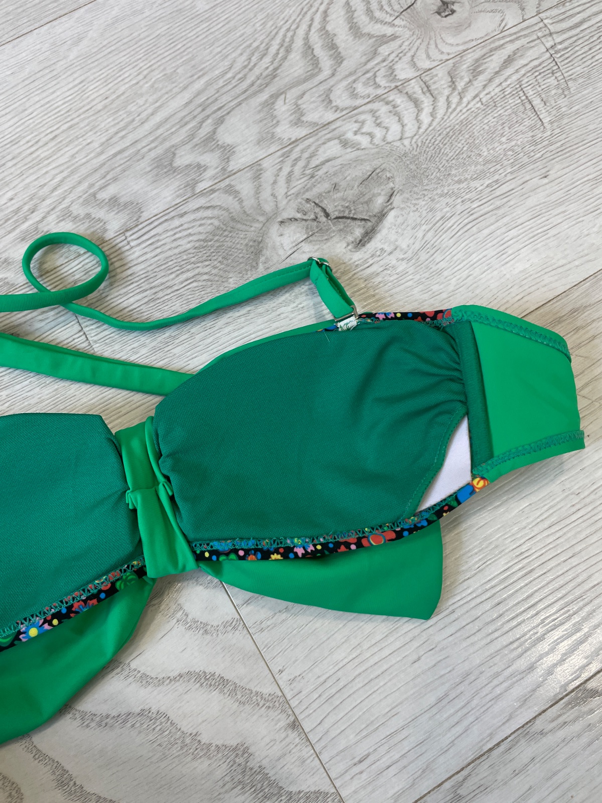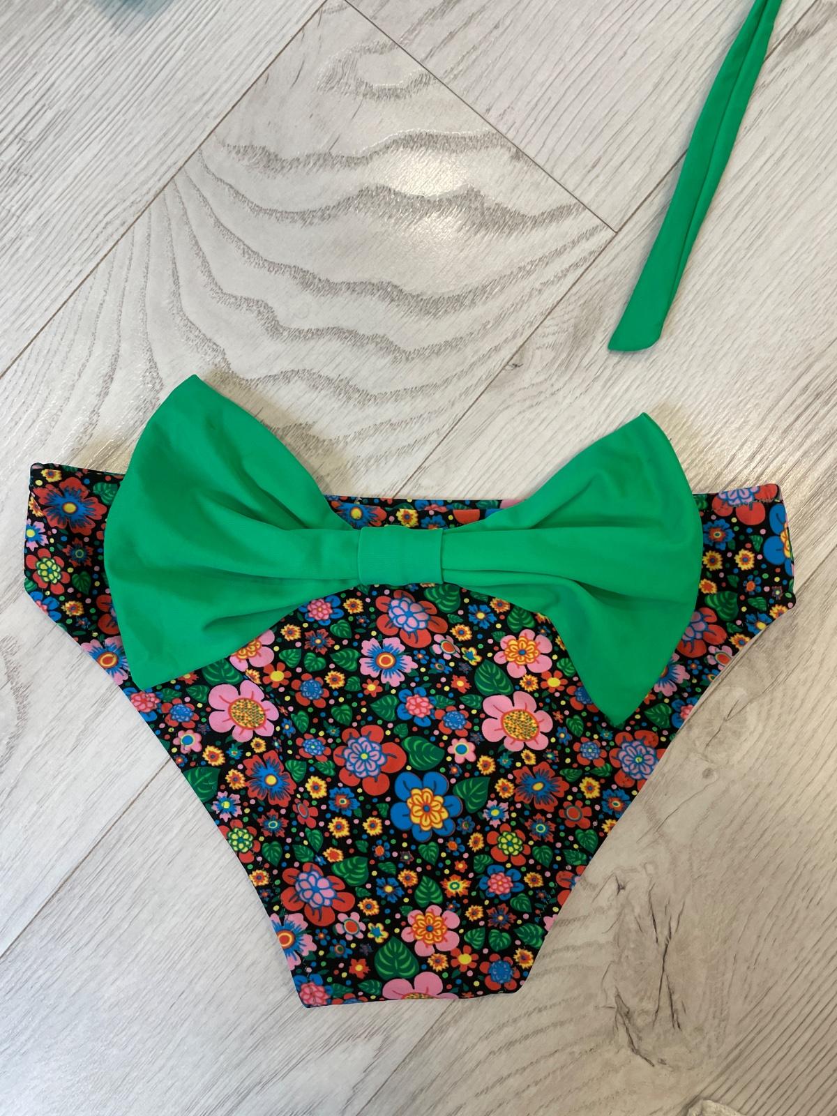 V top stave. Uvedená veľkosť 40 nesedí, sedí tak na XS/34. Mašlička odpáraná, dá sa našiť na spodný diel spredu, alebo zozadu. Vyberateľné vložky v podprsenke, nohavičky full-cover.