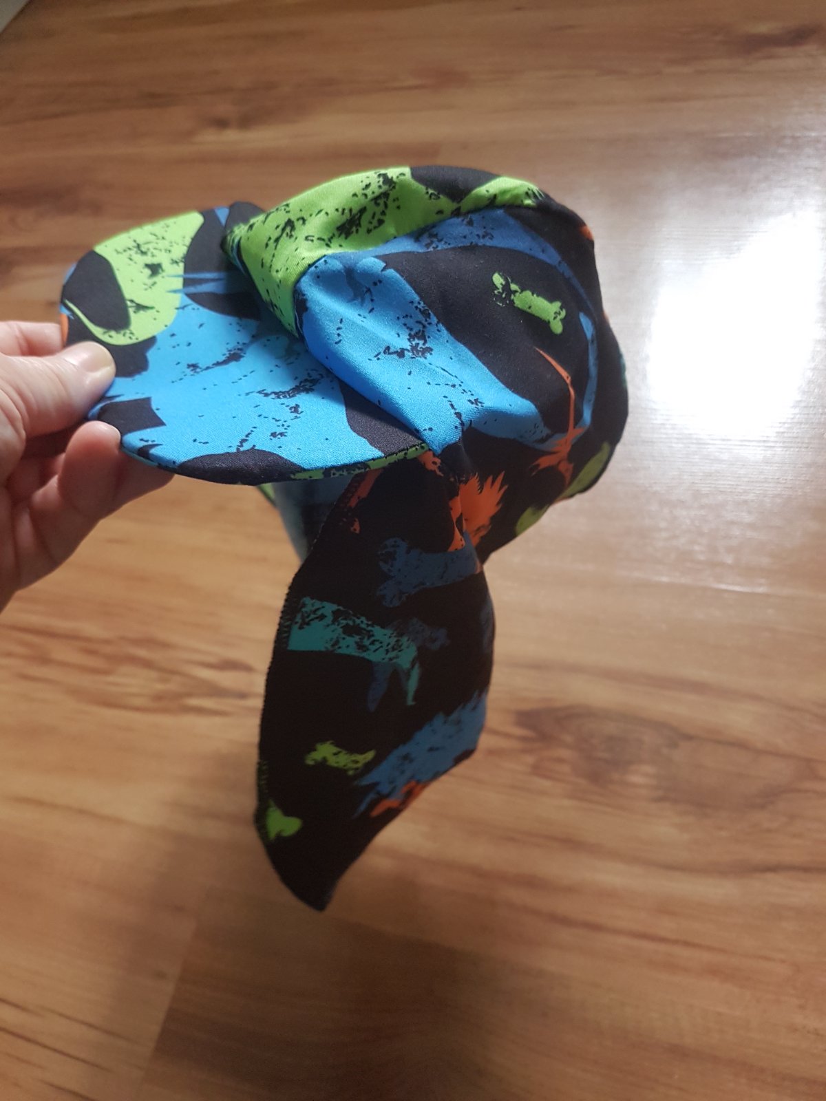 Lahúčka,rýchloschnúca,ideálna na dovču k moru.vzadu plachtička proti spáleniu krku.vel.je orientačná,asi od pod roka vyššie podla obvodu hlavičky.kuk celý mój bazárik