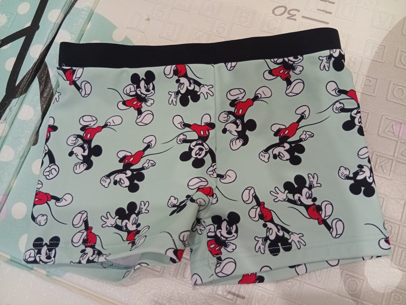 Plavky velkost 110-116, nosilo sme sucasne, vo vnutri maju sietku a mimonove aj male vrecko. Su vo velmi dobrom stave. Na mimonovych ako drzi surf je taka pokrcenejsa latka neviem z coho ale takmer...