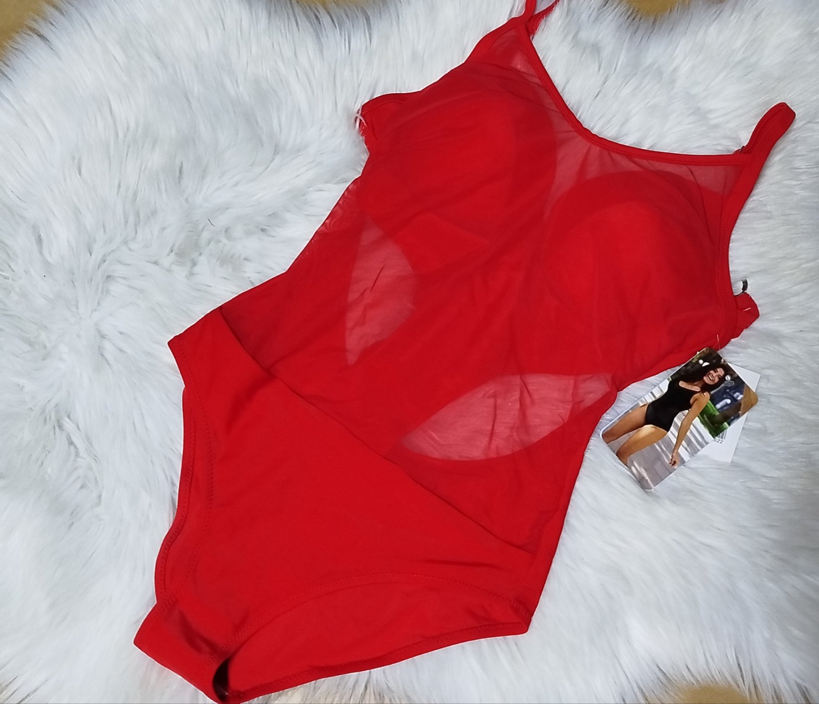 Dámske luxusné plavky červené so sieťkou