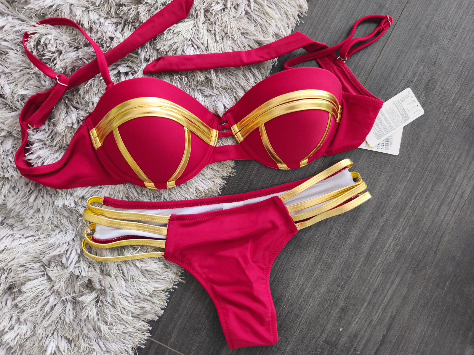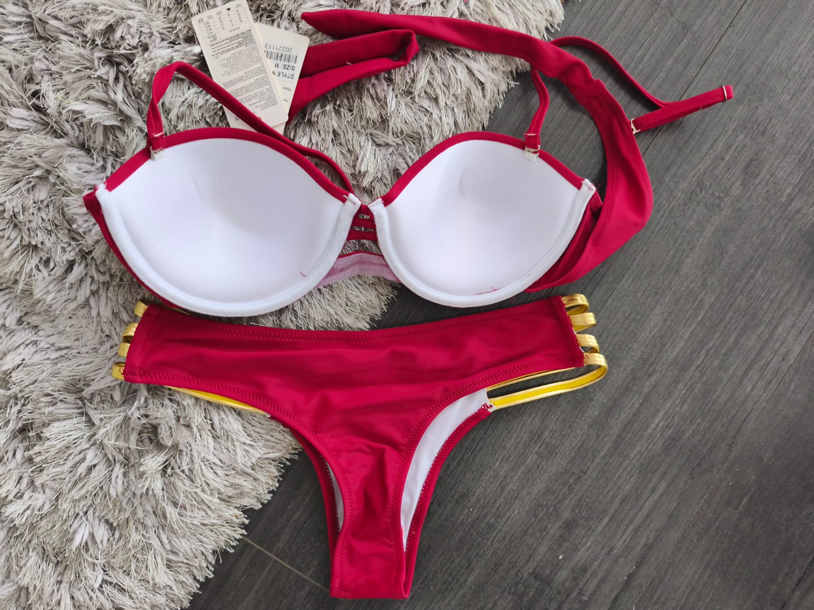 TOTÁLNY VY´PREDAJ. Vystužená push up podprsenka s nastaviteľnými a odnímateľnými ramienkami. Podprsenka s viazaním. Nohavičky brazílky . Krásny model.