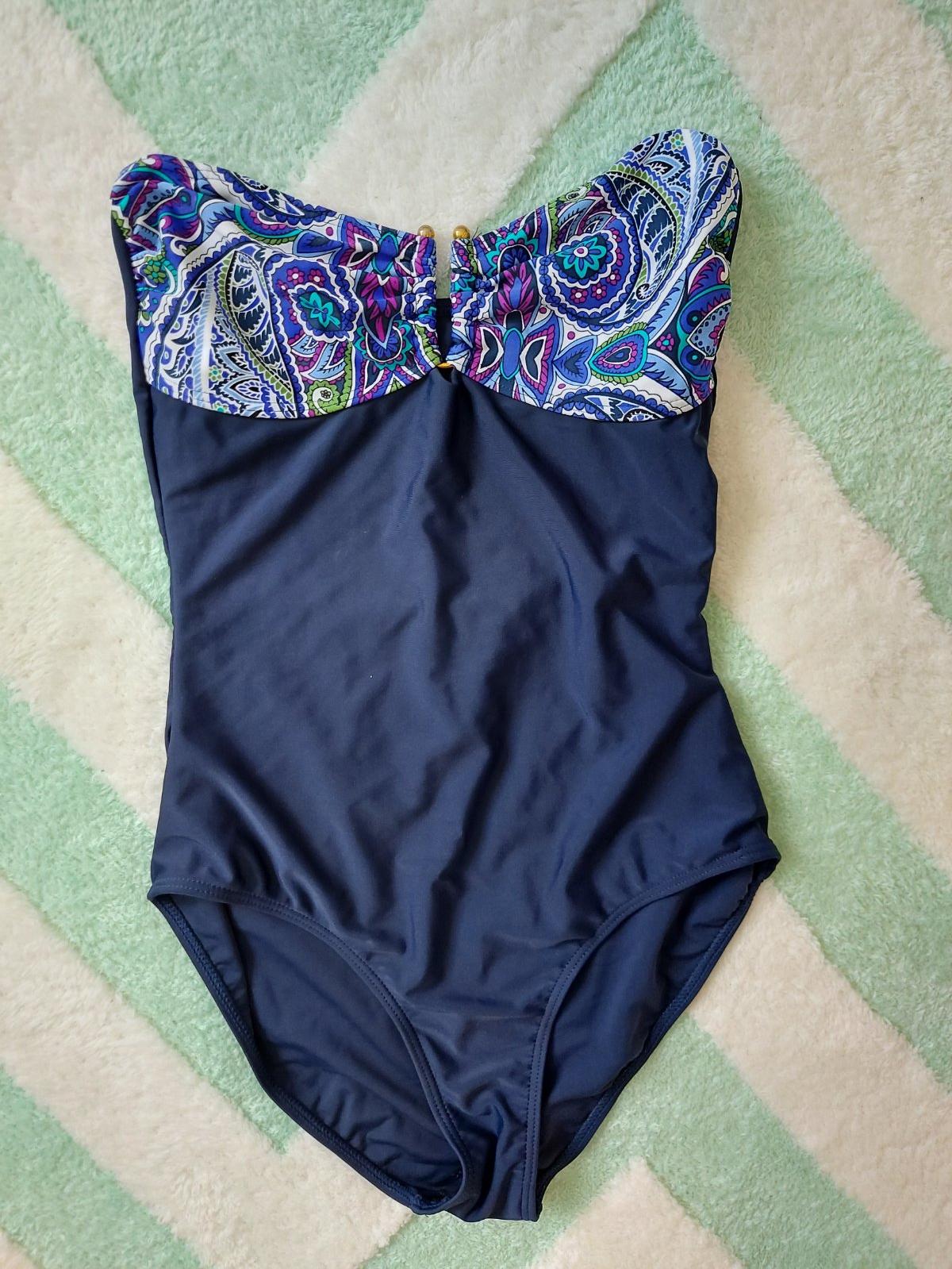 Nadherne, kvalitne plavky, tmavomodre s bielymi pruzkami. Prijemna kvalitna strukturovana plavkovina, podsite, s vypchavkami v kosickoch. Strih na zadku klasicky nohavickovy. Nove, nepouzite. Vyrob...