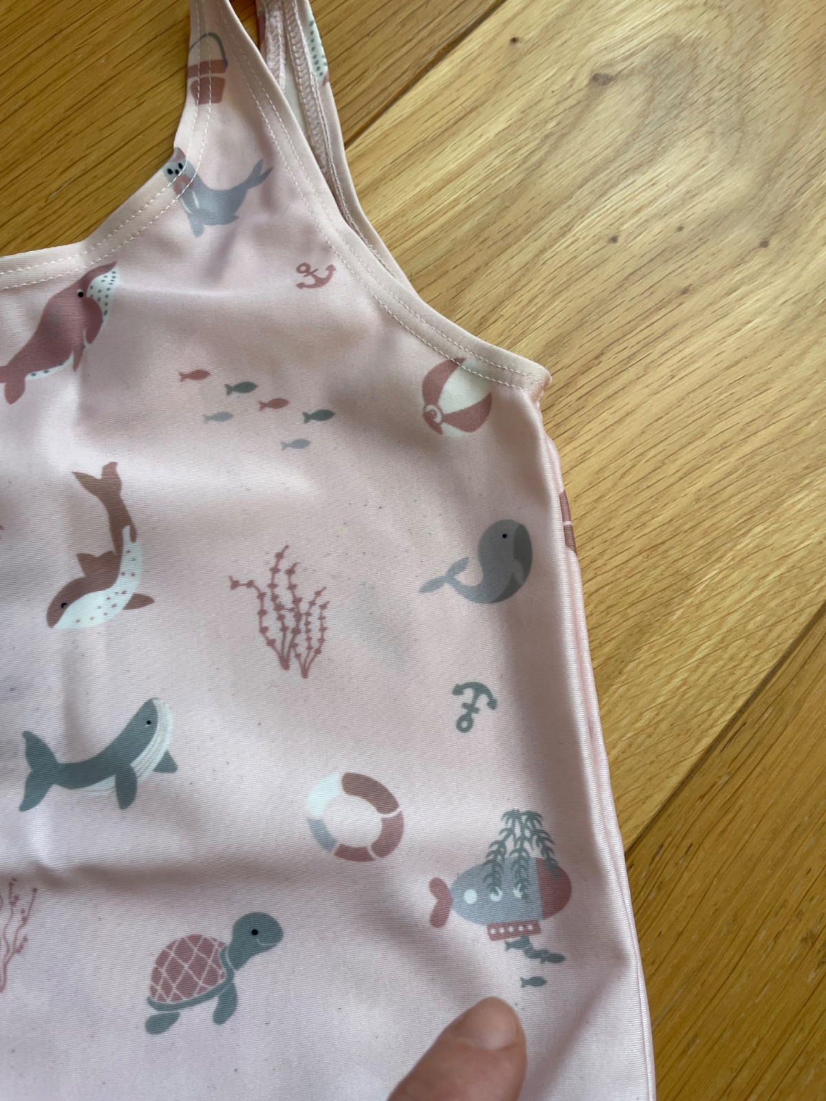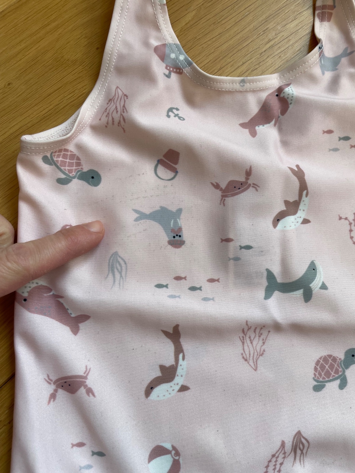 Ružové so zvieratkami . Pekný nosený stav - maju čierne bodky od piesku (vid foto) . Cena:4€